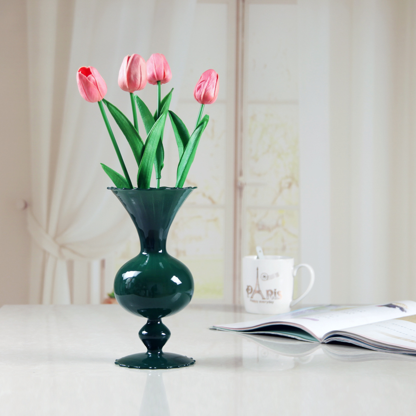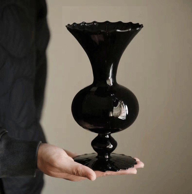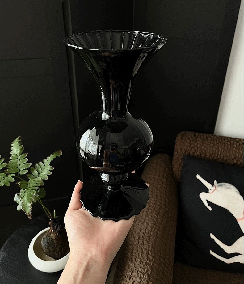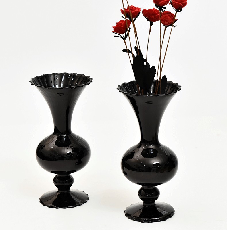 유럽 스타일의 꽃꽂이 거실 테이블 장식 중반 고대 검은 질산염 유리 꽃병 고급 인 스타일스토어 가기