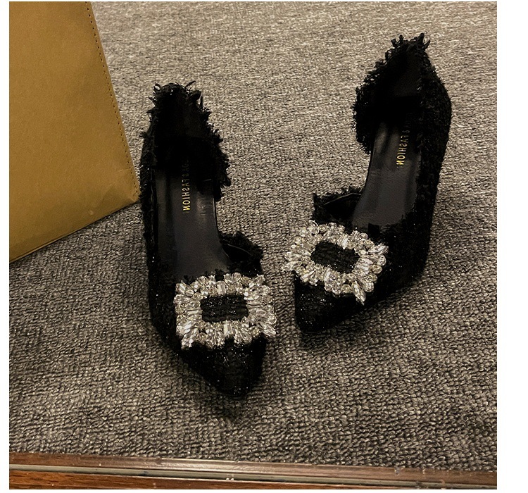 하이힐 여성 틈새 디자인 프렌치 포인티드 슈즈 2024 여름 신상 스틸레토 힐 작은 향기로운 모조 다이아몬드 슈즈