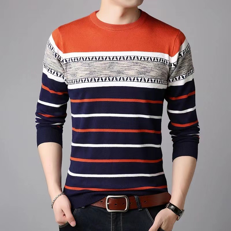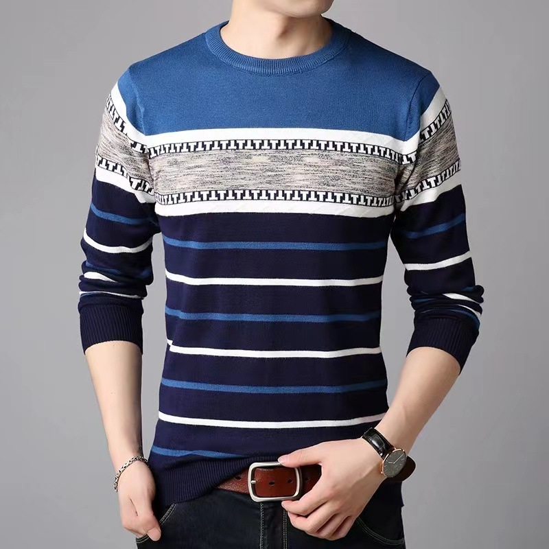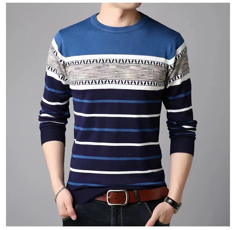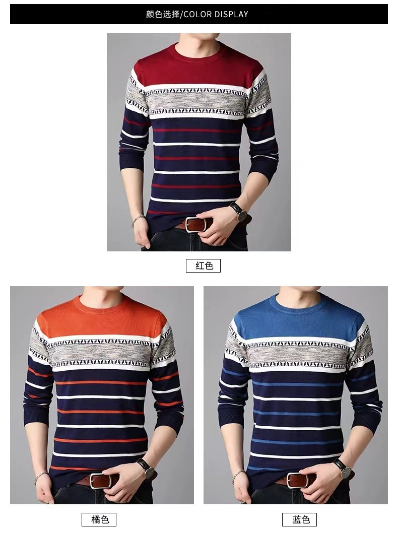 남성 스웨터 크로스 보더 뉴 패션 캐주얼 슬림 한국 스타일 남성 스웨터 라운드 넥 다재다능한 바닥 스웨터
