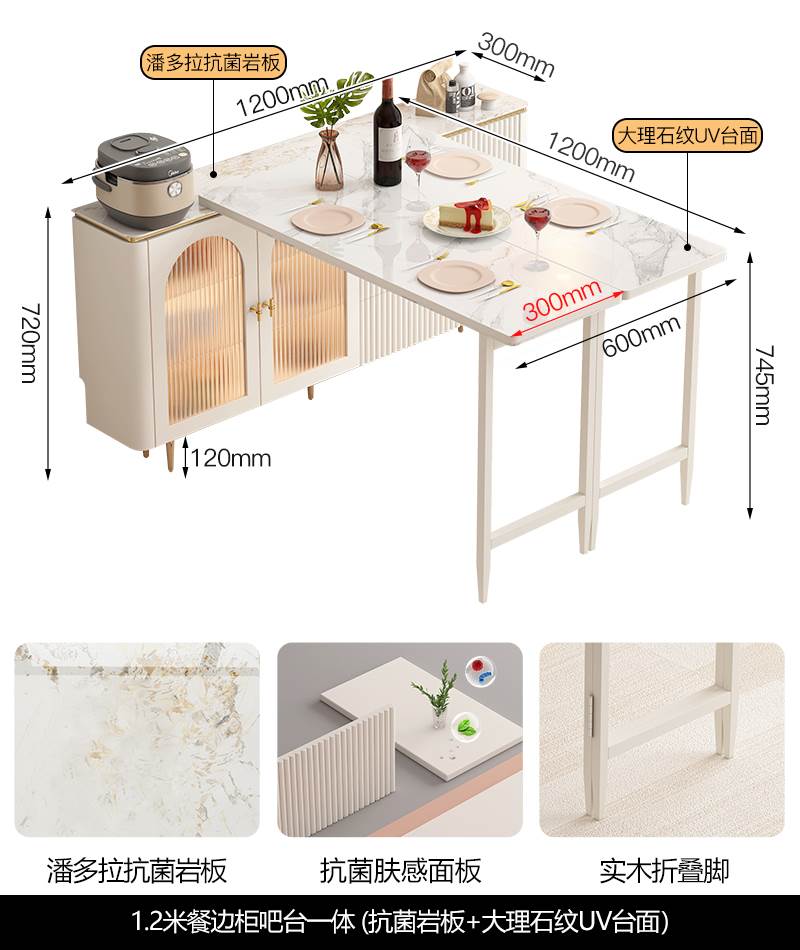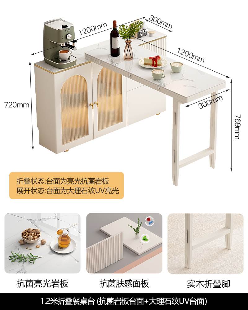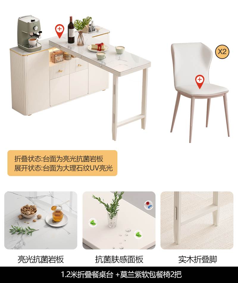 • 1.2 m 접이식 식탁 Calaka 화이트 록 플레이트 + 대리석 질감 UV 테이블