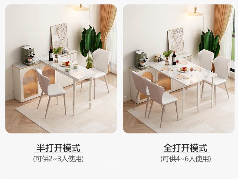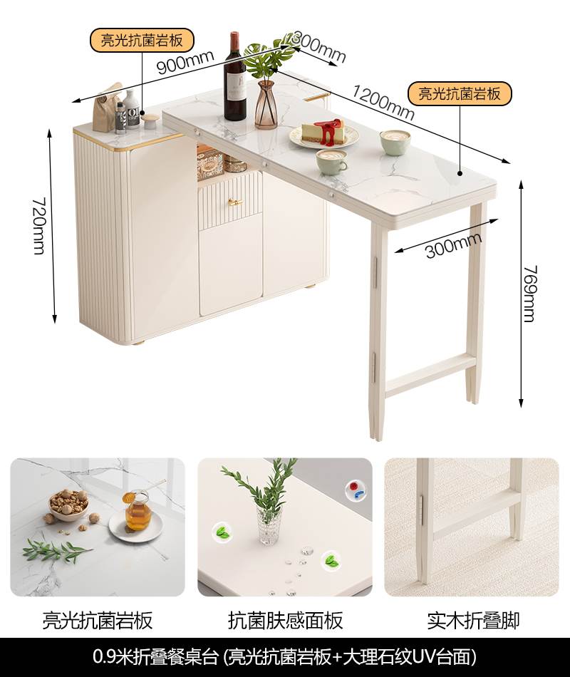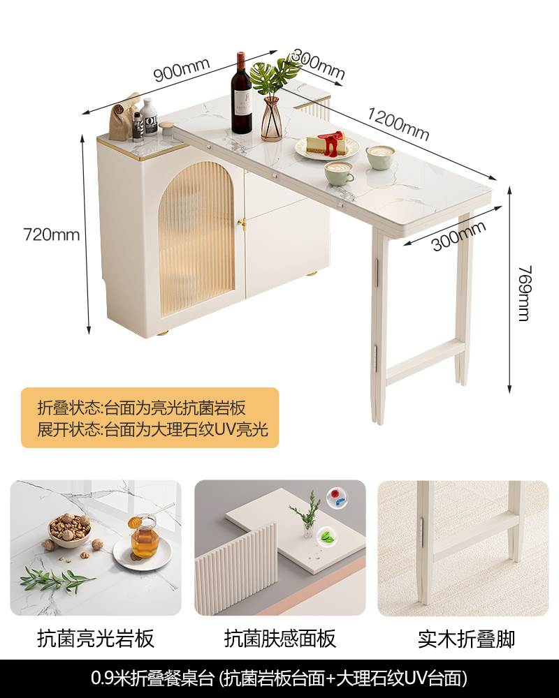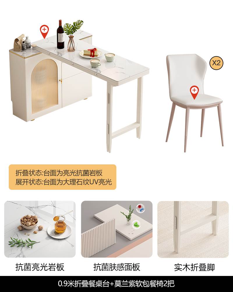 • 0.9 m 접이식 식탁 Calaka 화이트 록 플레이트 + 대리석 질감 UV 테이블