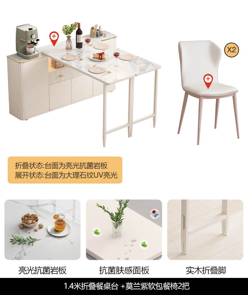 • 1.4 m 접이식 식탁 Calaka 화이트 록 플레이트 + 대리석 질감 UV 테이블