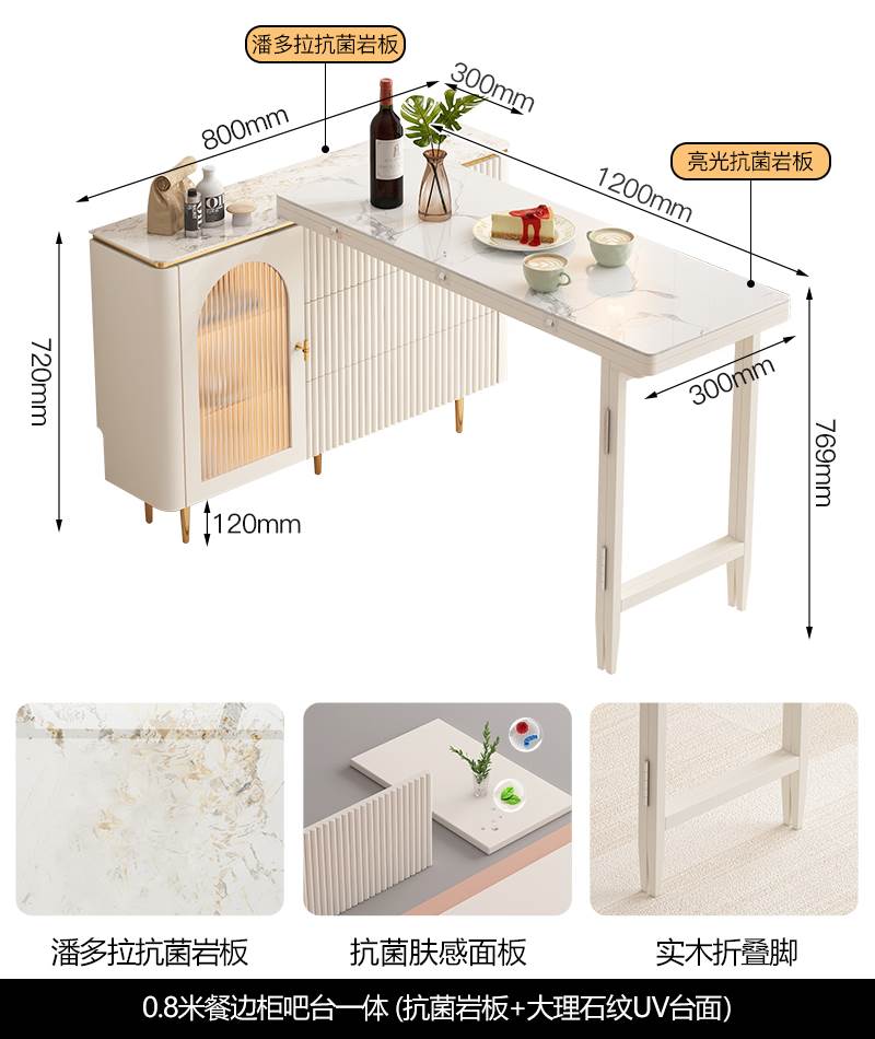• 0.8 m 접이식 식탁 판도라 암판 + 대리석 질감 UV 테이블