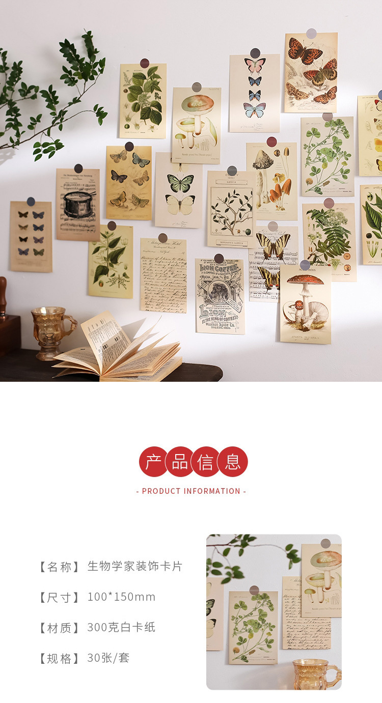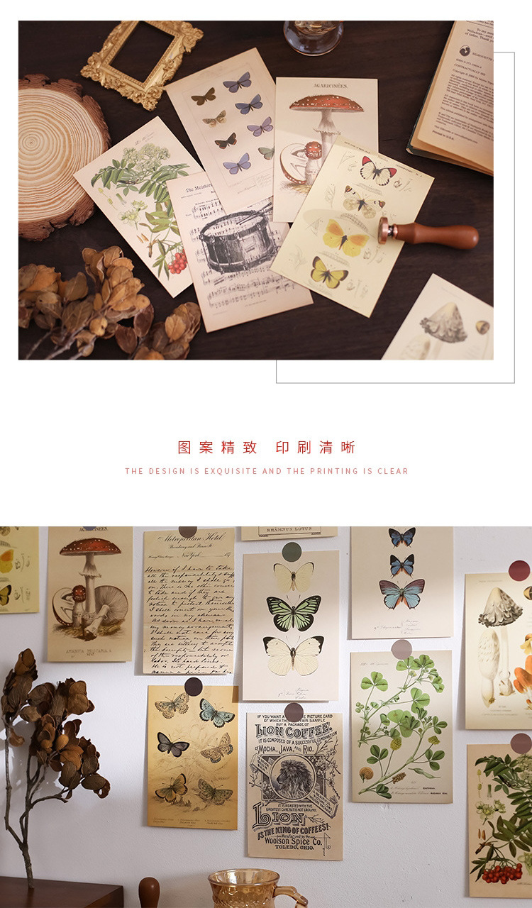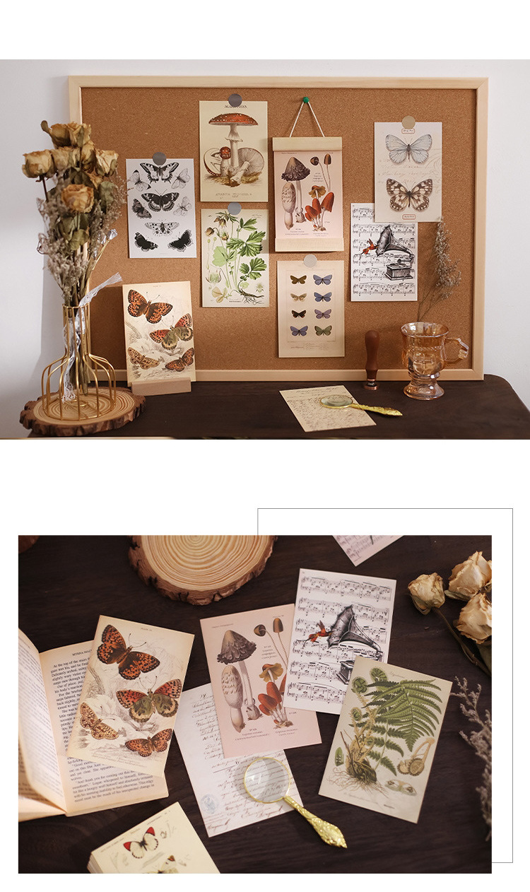 생물 학자 빈티지 나비 장식 카드 방 침실 벽 스티커 사진 소품 저널 소재 엽서스토어 가기