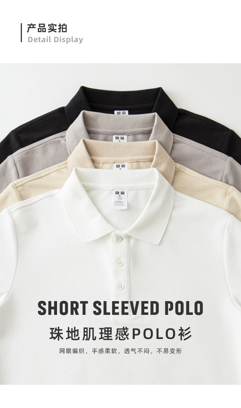 2402 펄 코튼 폴로 셔츠 200g 남성 여름 얇은 통기성 비즈니스 캐주얼 옷깃 단색 짧은 소매 티셔츠