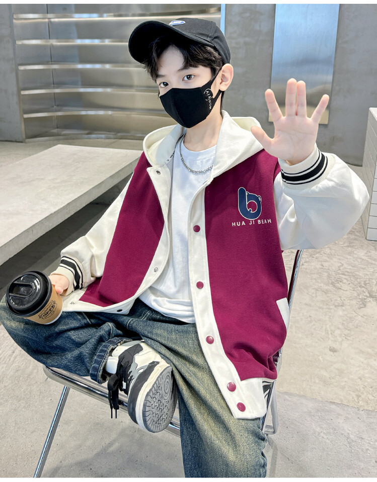 어린이 의류 소년 봄 코트 2024 새 소년 봄 가을 중간 및 큰 어린이 야구 유니폼 봄 잘 생긴 슈퍼