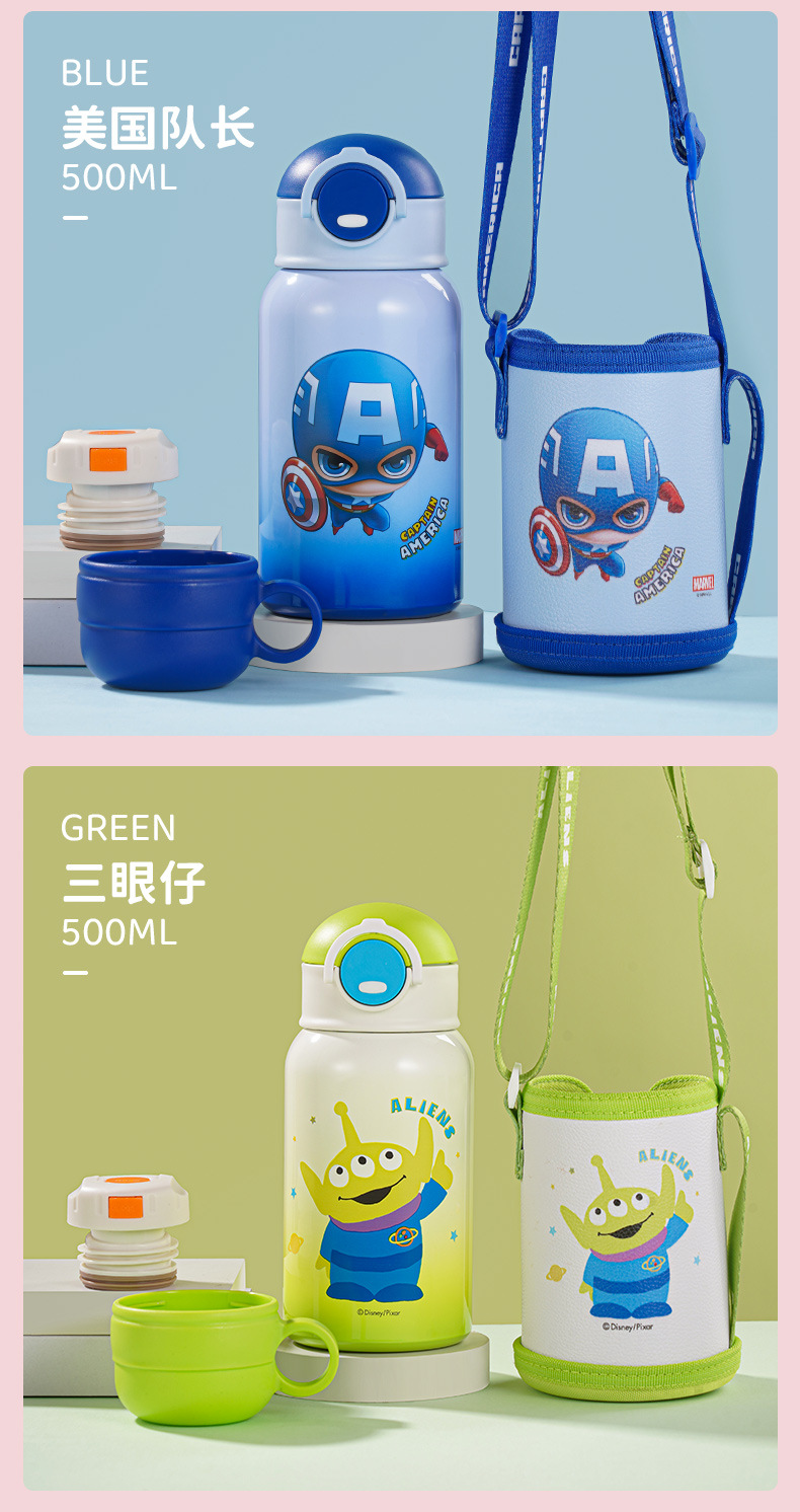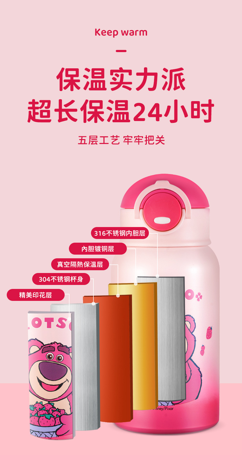 정품 공인 딸기곰 엘사 공주 고급 보온병 컵 316 스테인레스 스틸 보온병 주전자 이중 뚜껑 밀짚 컵