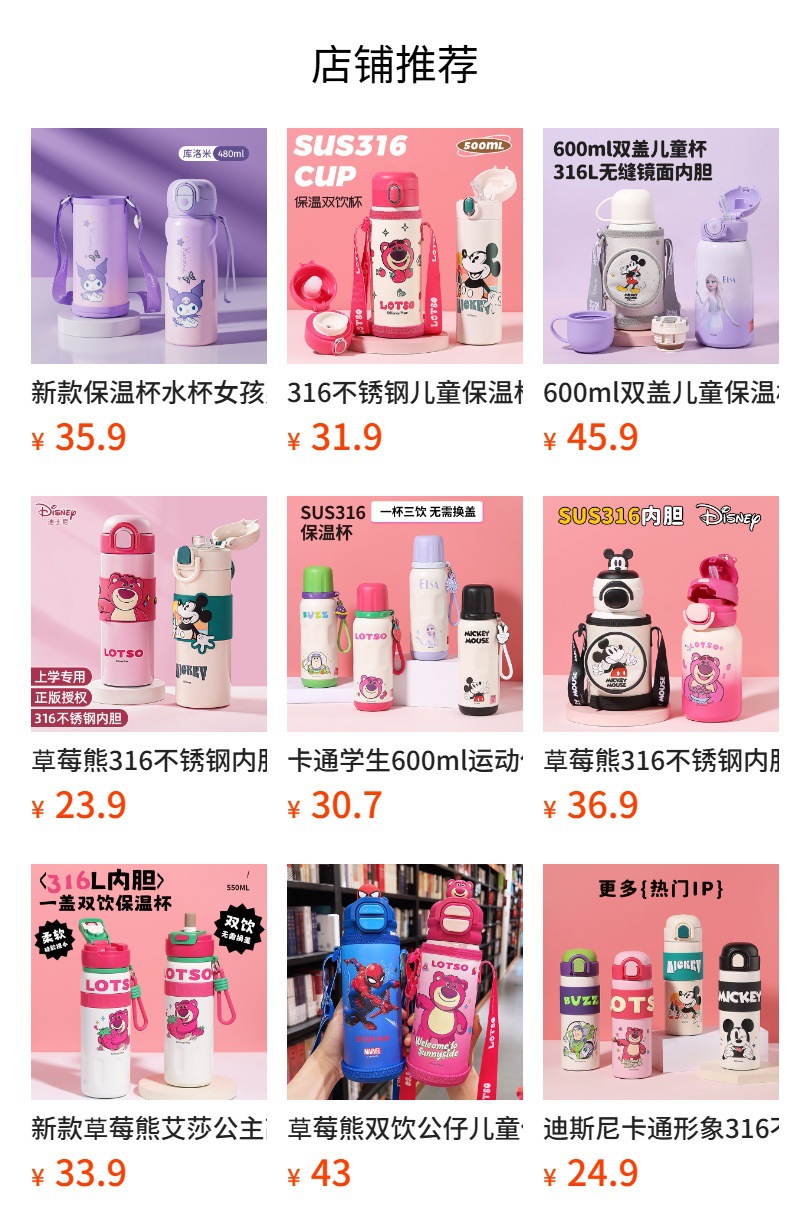 정품 공인 딸기곰 엘사 공주 고급 보온병 컵 316 스테인레스 스틸 보온병 주전자 이중 뚜껑 밀짚 컵스토어 가기