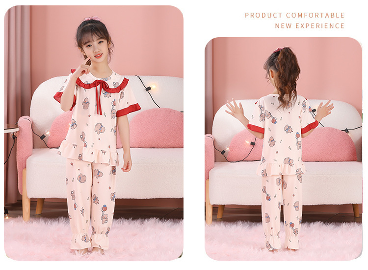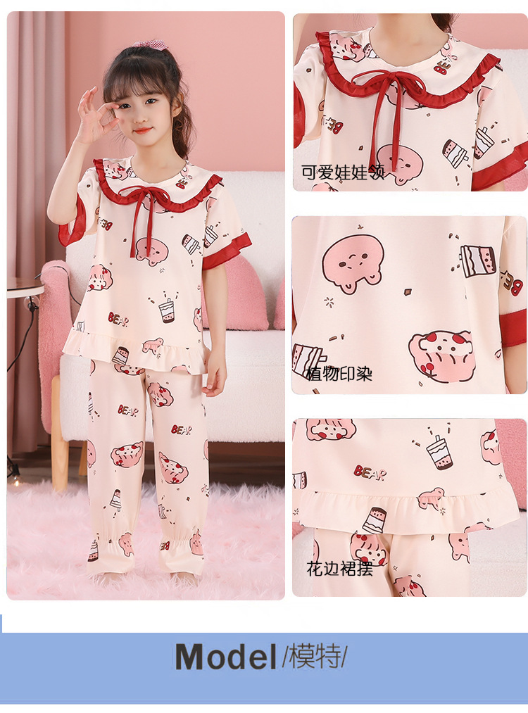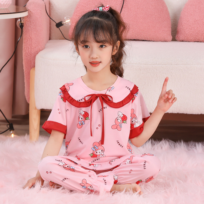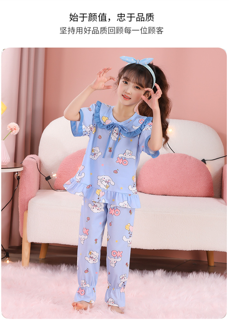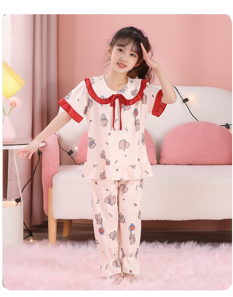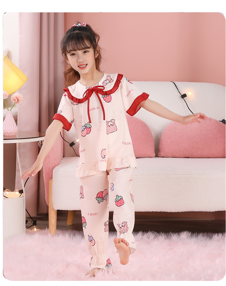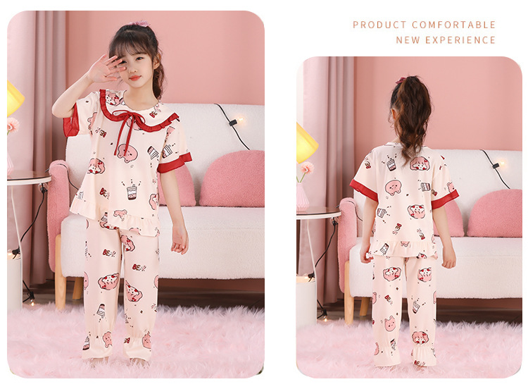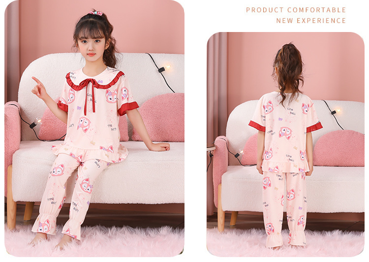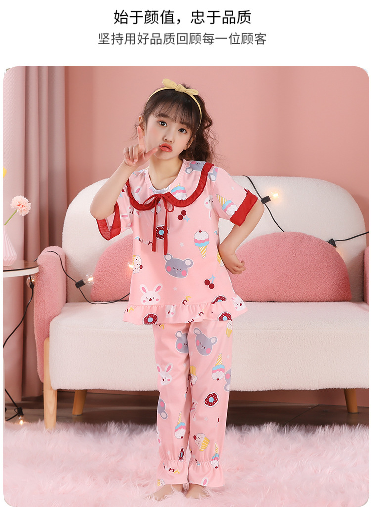 2024x 새로운 어린이 잠옷 소녀 여름 반팔 바지 공주 스타일 인형 칼라 홈웨어 세트 도매