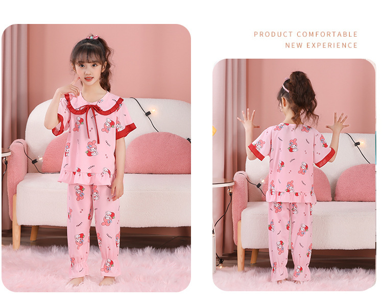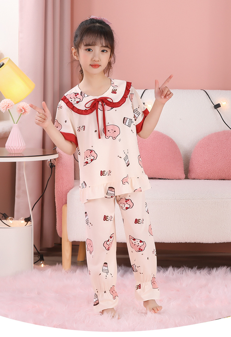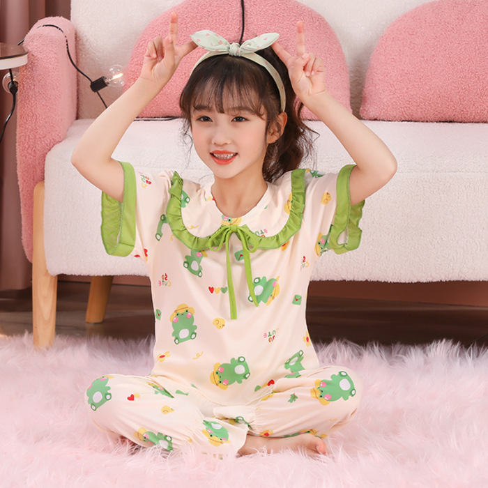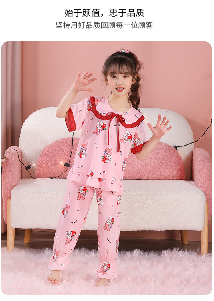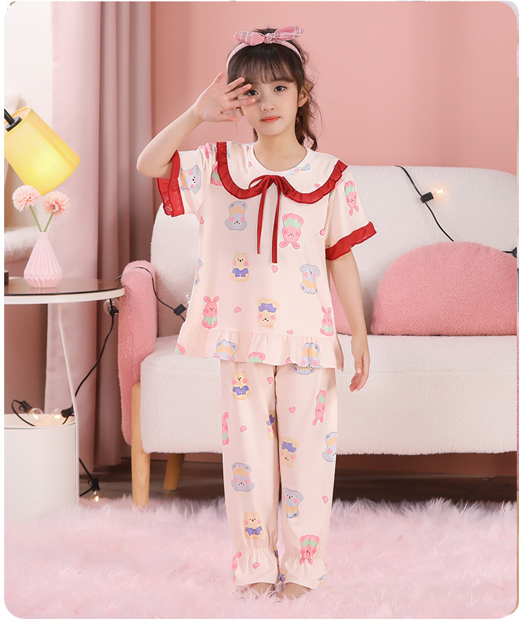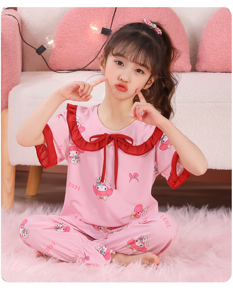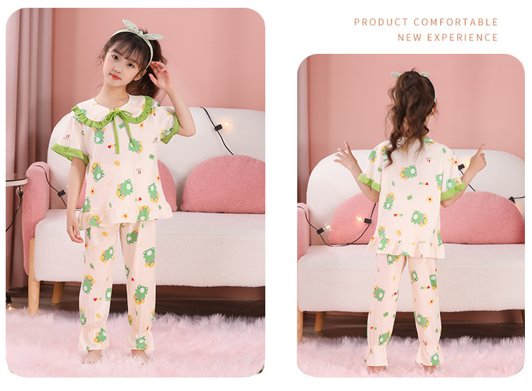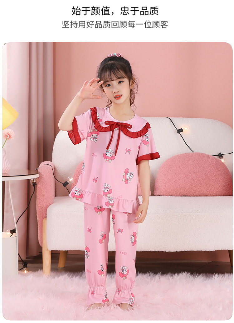 2024x 새로운 어린이 잠옷 소녀 여름 반팔 바지 공주 스타일 인형 칼라 홈웨어 세트 도매