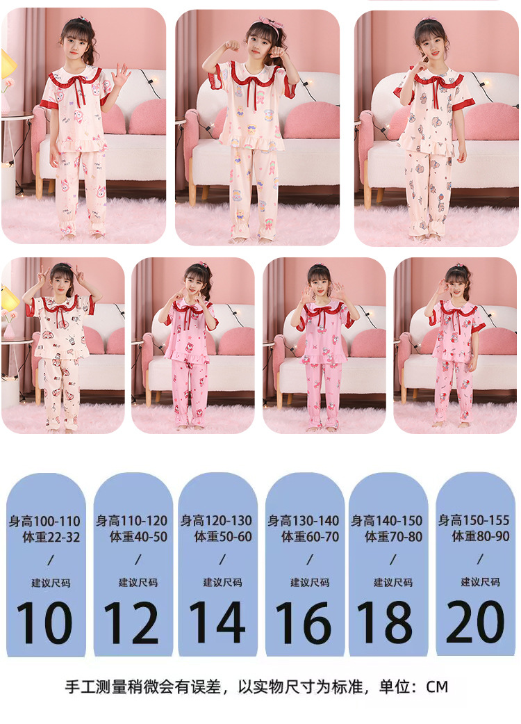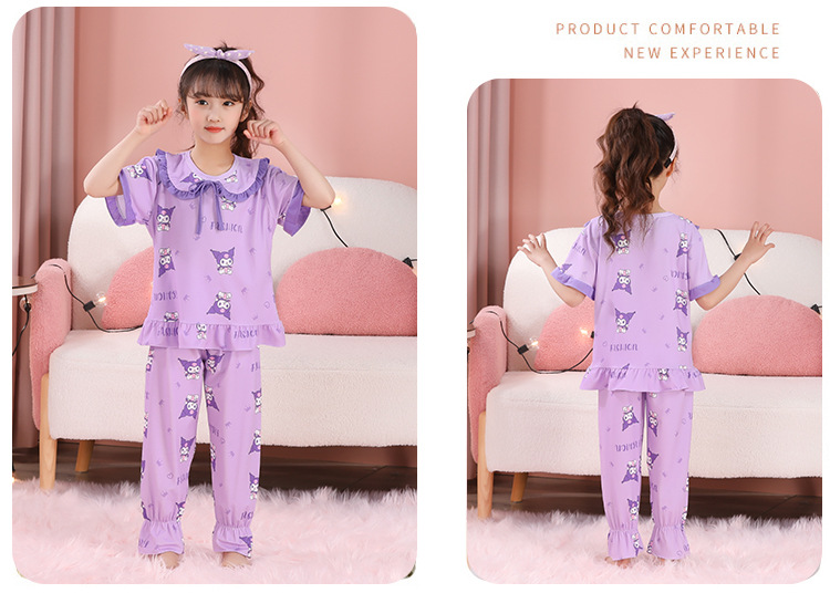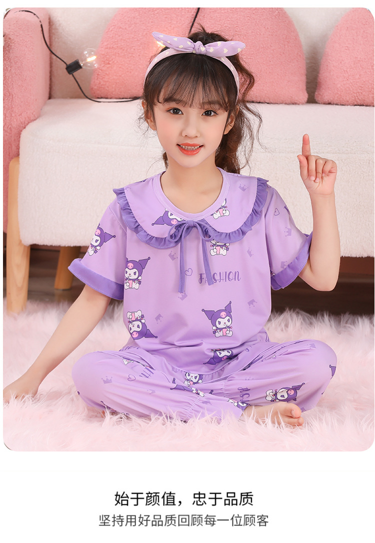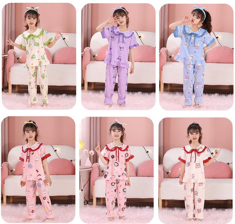 2024x 새로운 어린이 잠옷 소녀 여름 반팔 바지 공주 스타일 인형 칼라 홈웨어 세트 도매스토어 가기