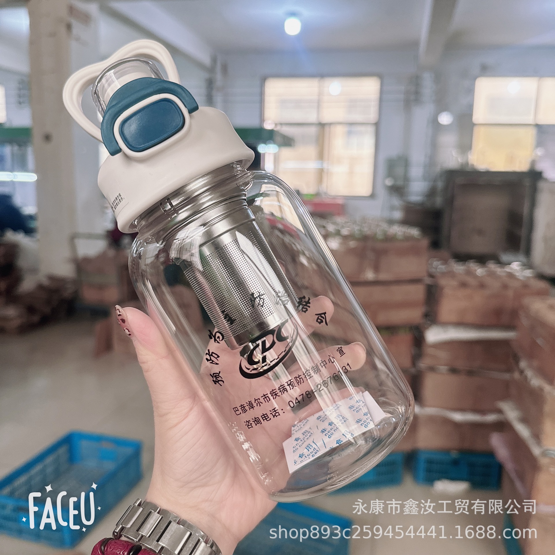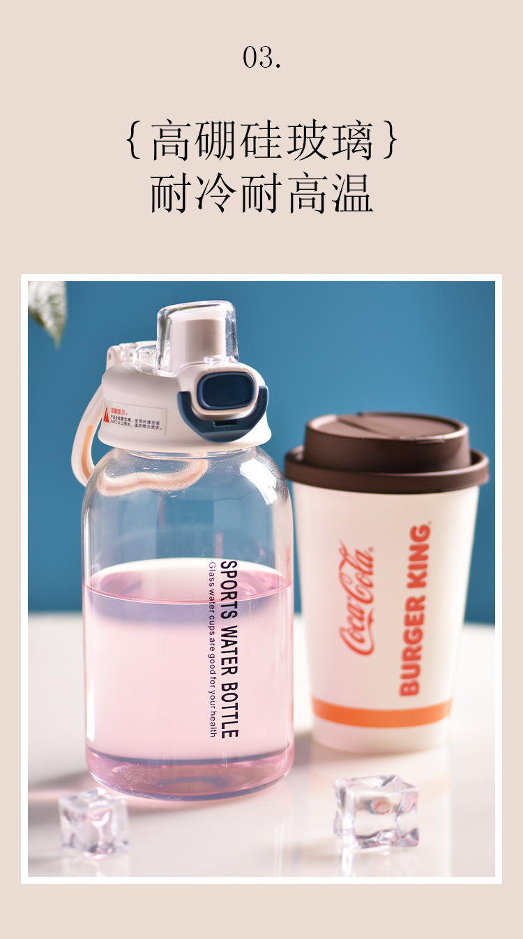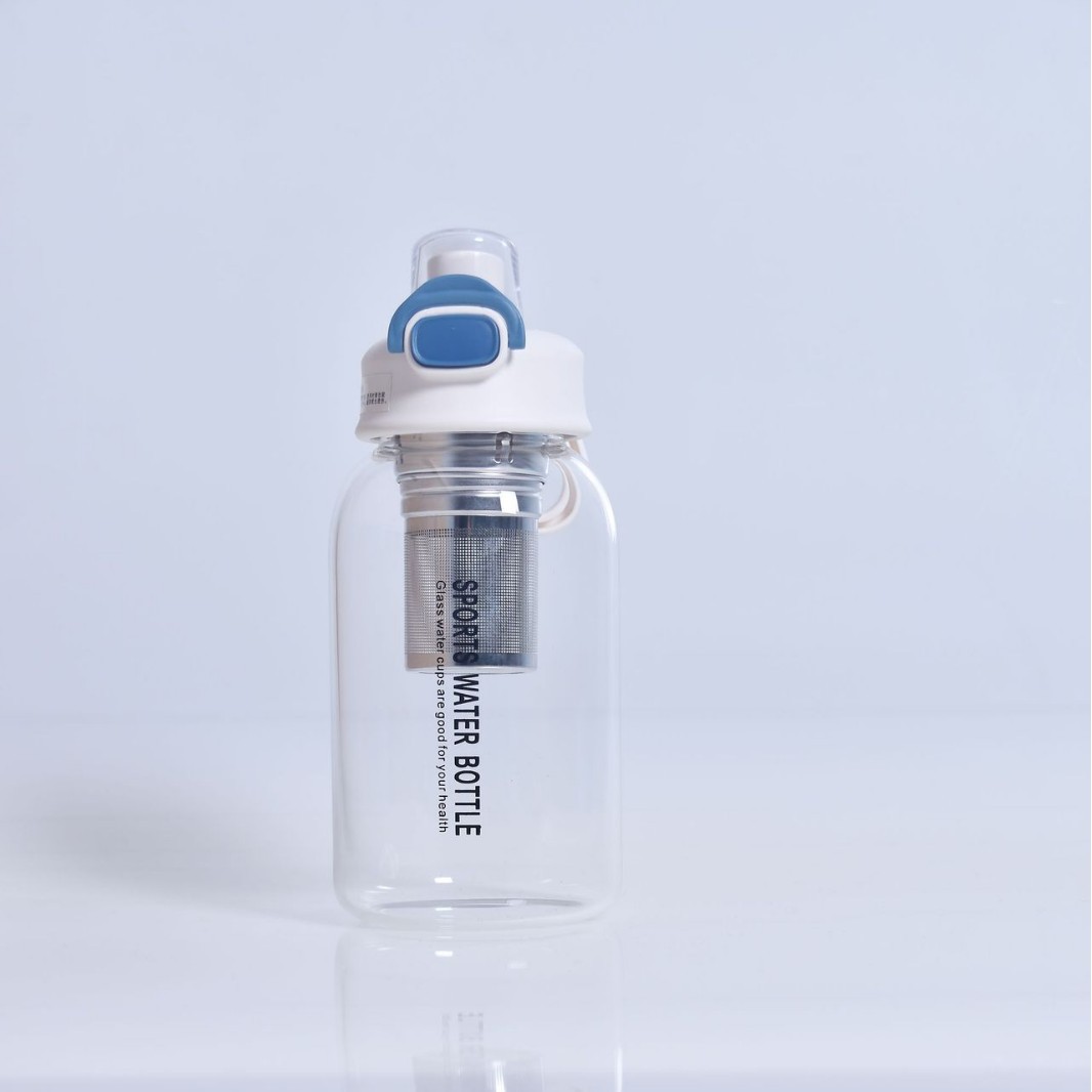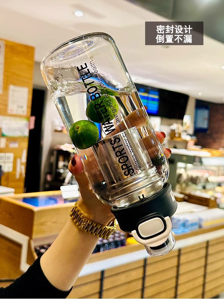 뜨거운 판매 대용량 차와 물 분리 유리 더블 드링킹 바운스 컵 야외 고온 방지 투명 고가치 컵스토어 가기