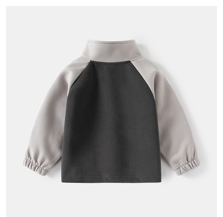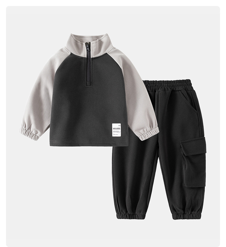 어린이 의류 2024 새로운 세트 소년 스웨트 셔츠 스포츠 바지 아기 스탠드 칼라 투피스 세트 어린이 색상 매칭 세트 도매