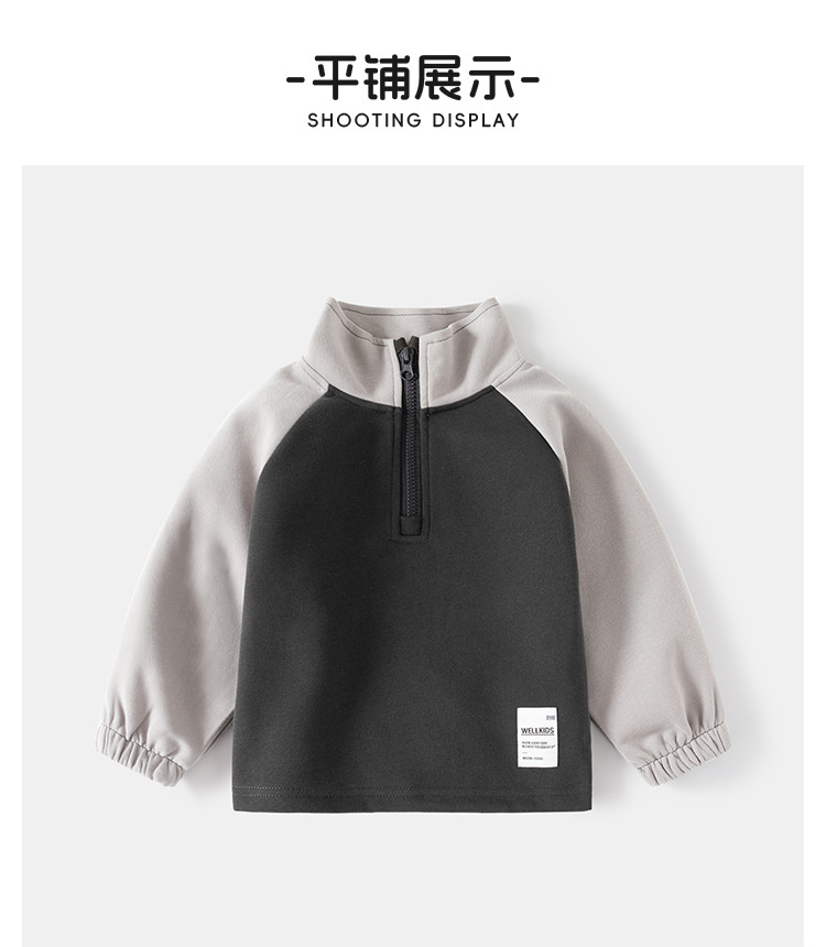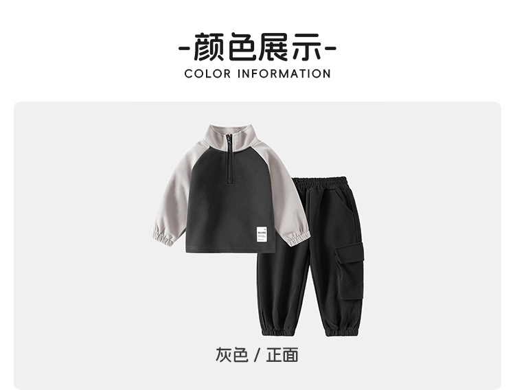 어린이 의류 2024 새로운 세트 소년 스웨트 셔츠 스포츠 바지 아기 스탠드 칼라 투피스 세트 어린이 색상 매칭 세트 도매스토어 가기