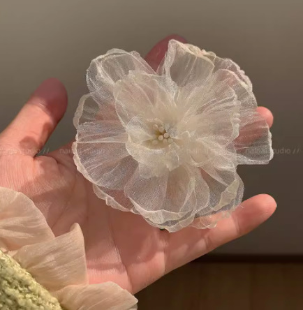 原创蕾丝缎面蝴蝶结发夹女成人高级感小香风后脑勺抓夹马尾发卡