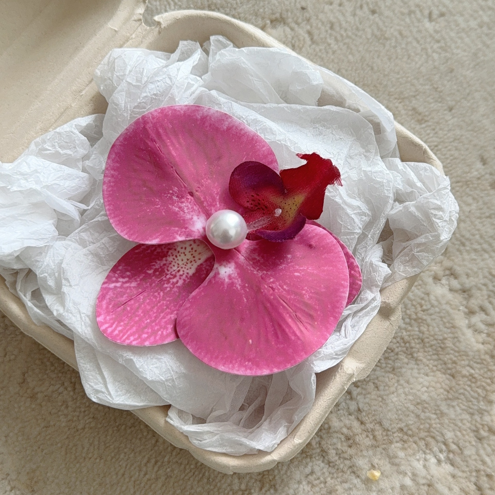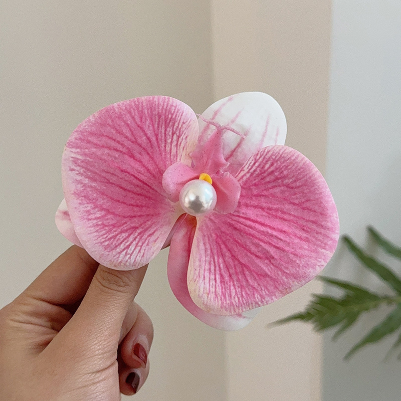 한국 스타일 우아한 호접란 꽃 헤어핀 사이드 프린지 클립 여성 서문 진주 헤드웨어 2024 새로운 스타일