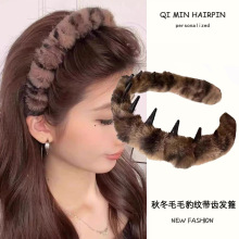 秋冬毛毛豹纹发箍女带齿毛绒防滑洗脸发卡2024年秋冬化妆发饰头箍