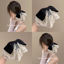 浪漫少女 黑色蕾丝边丝绒蝴蝶结双马尾飘带发箍女后脑勺夹子头饰