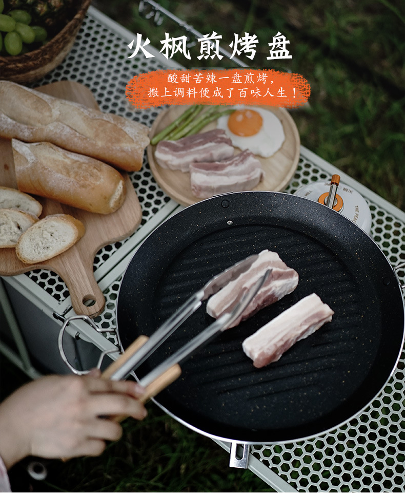 불 메이플 야외 바이 웨이 프라이팬 캠핑 바베큐 팬 비 스틱 코팅 바베큐 용품 카드 스토브 가정용 베이킹 팬스토어 가기