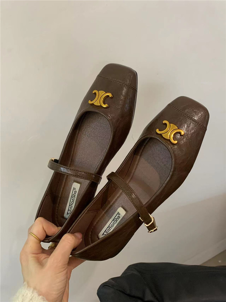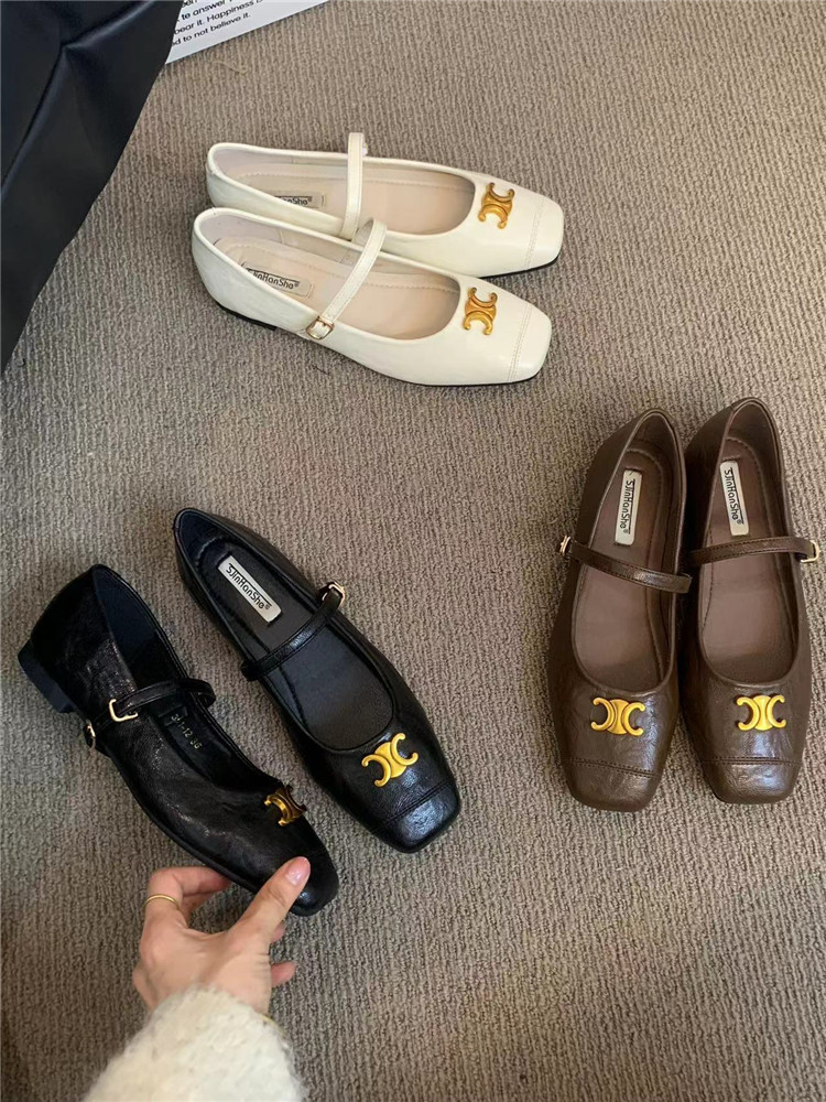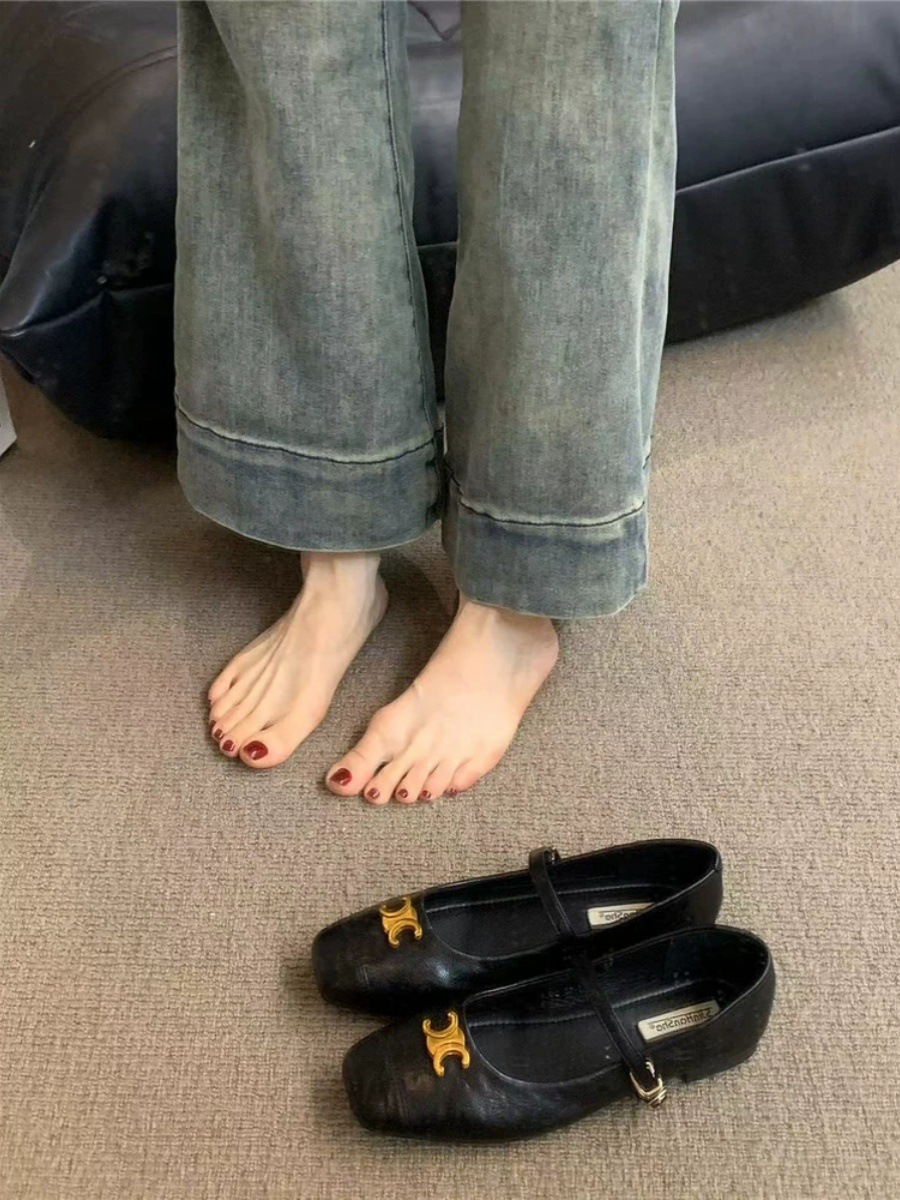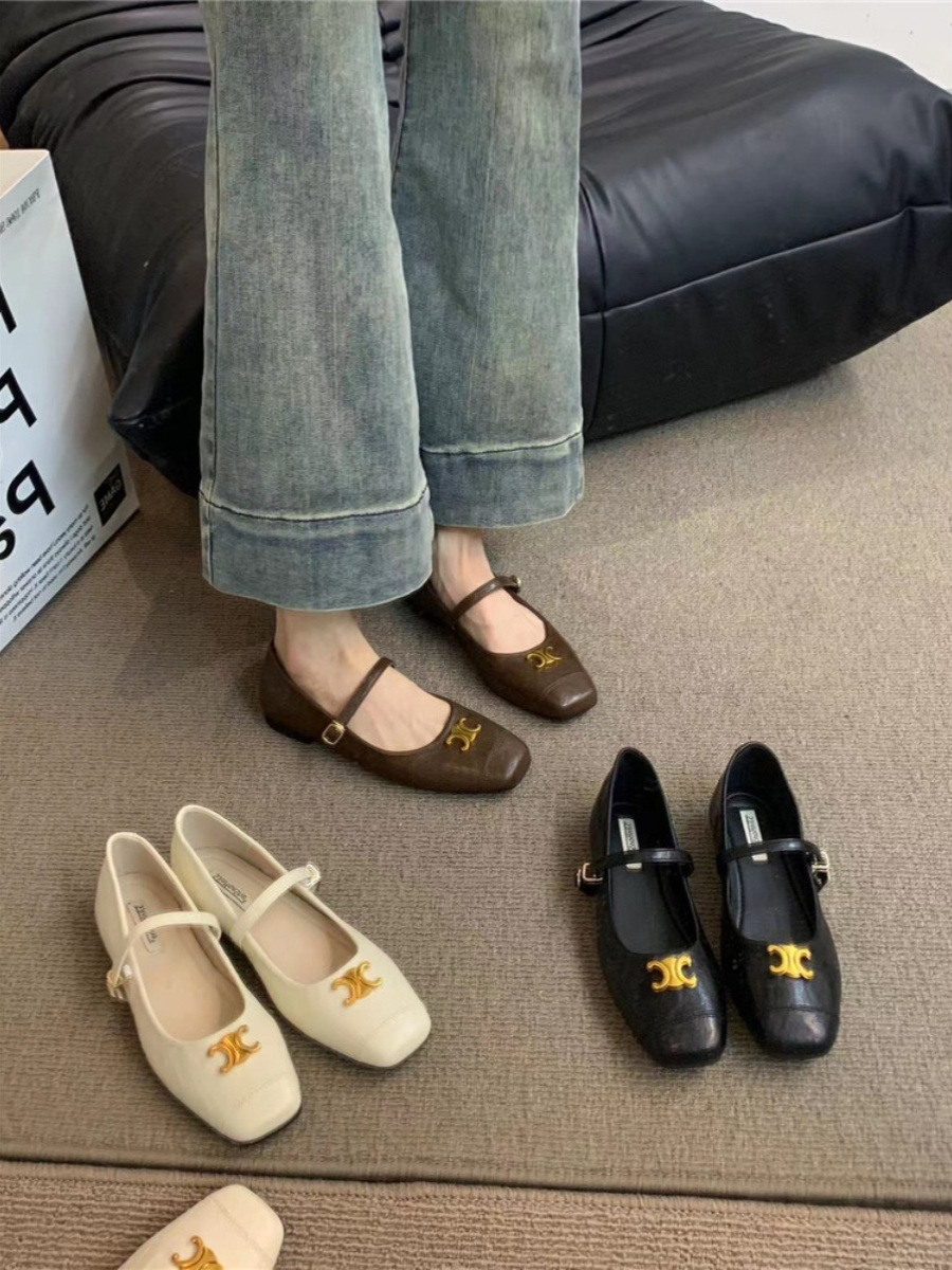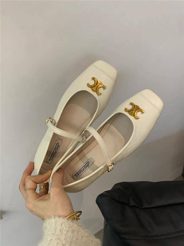 레트로 메리 제인 신발 여성 신발 2024 한국의 세련된 샤넬 스타일 금속 버클 스퀘어 토 얕은 입 부드러운 바닥 신발스토어 가기