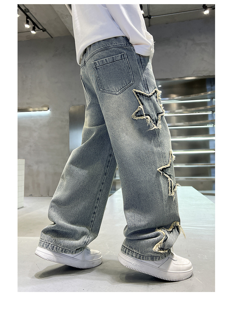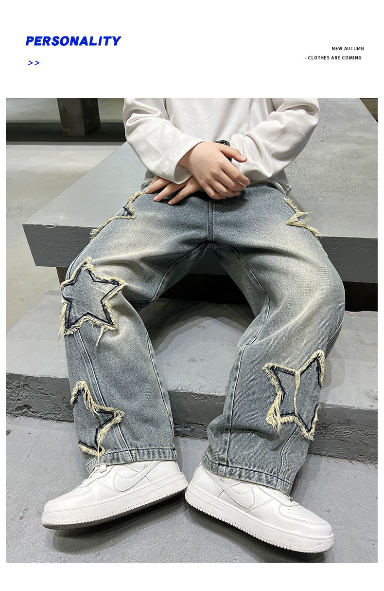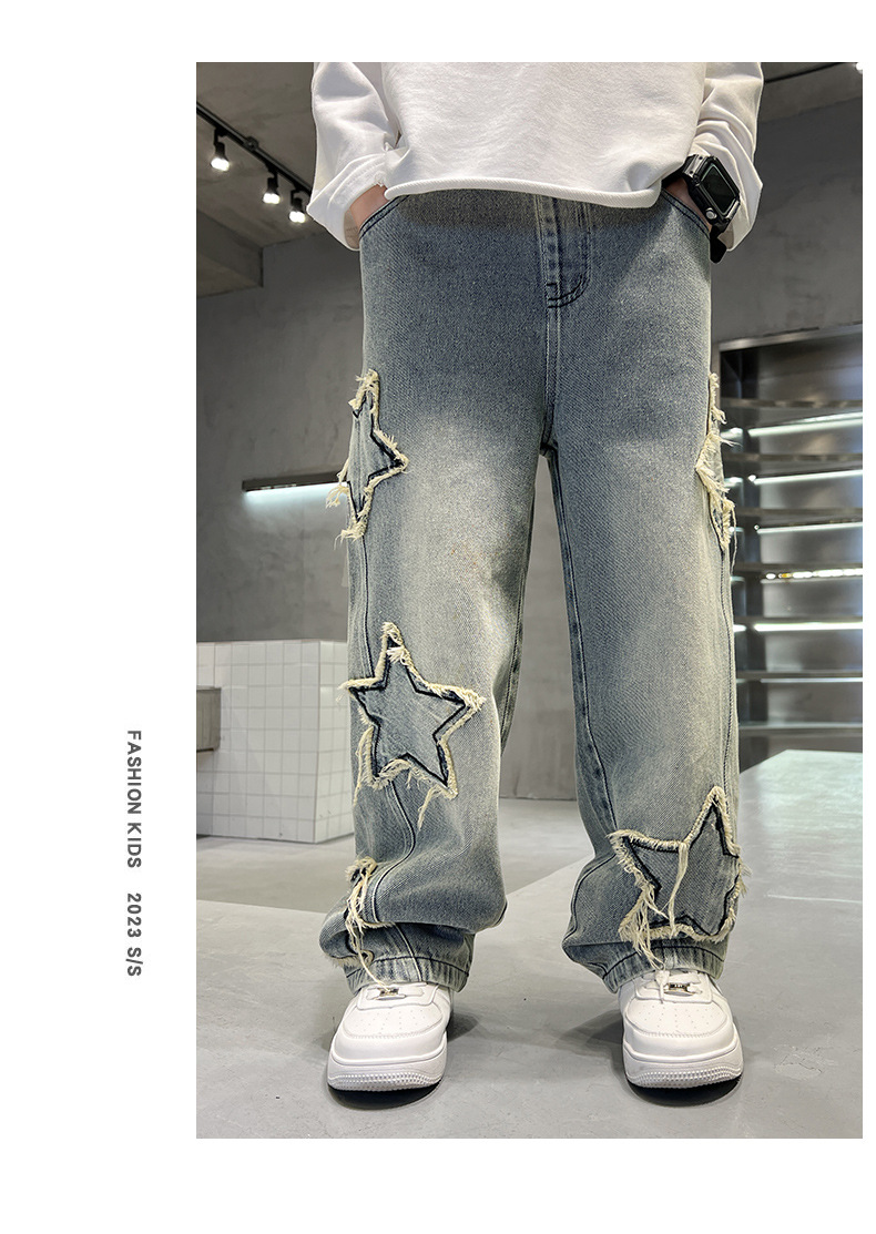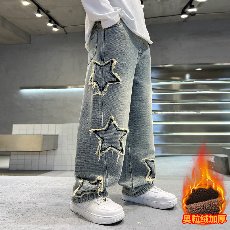【외국 무역용】중대형 남아용 청바지 2025 봄 가을 아동복 가을 겨울 기모 처리된 일자 바지스토어 가기