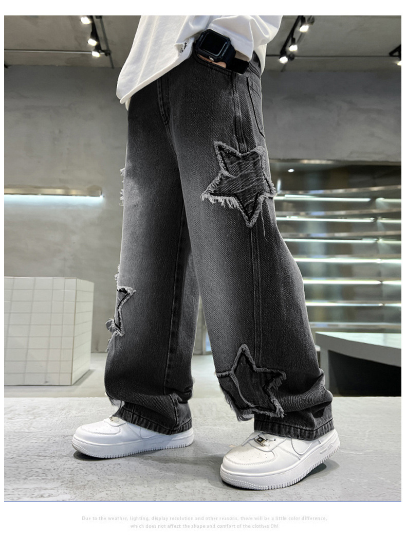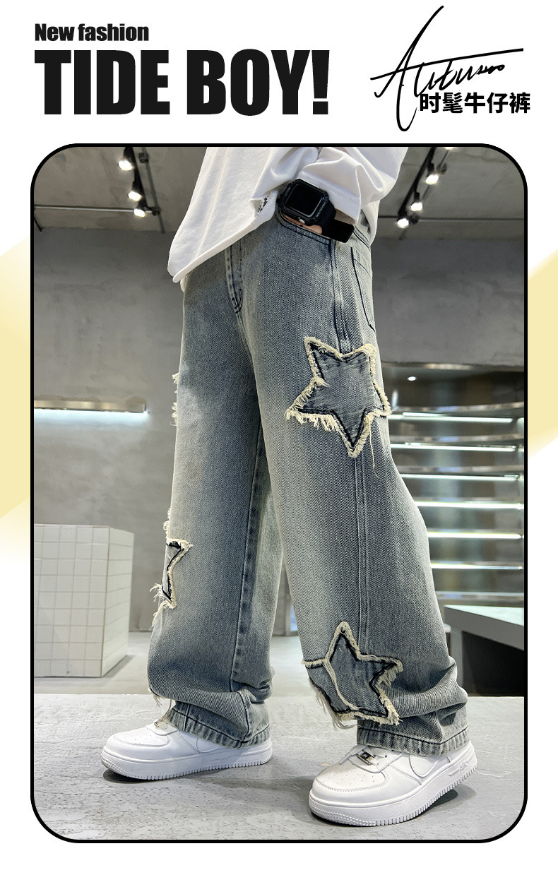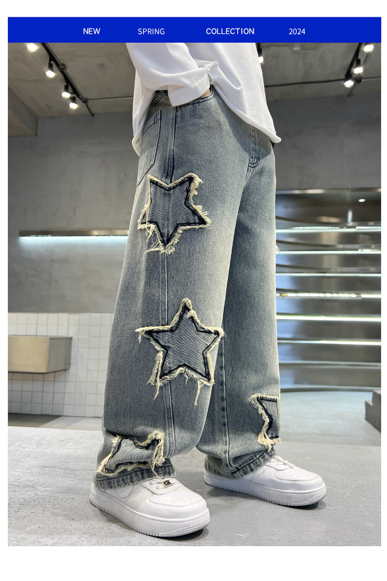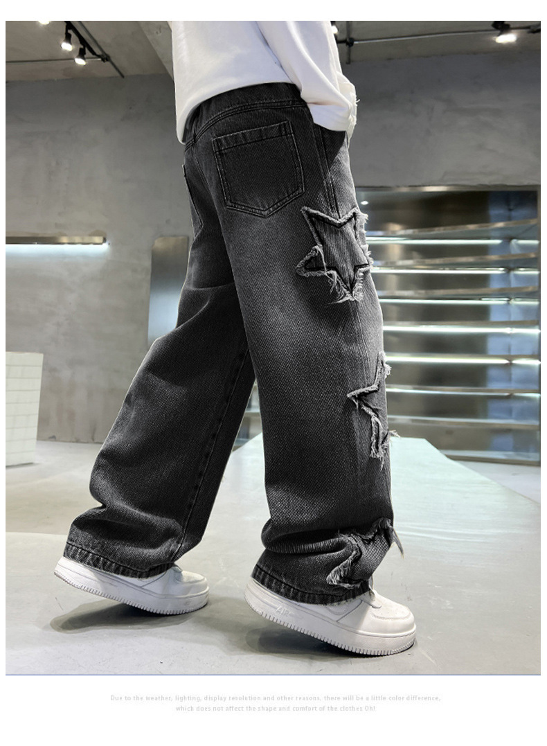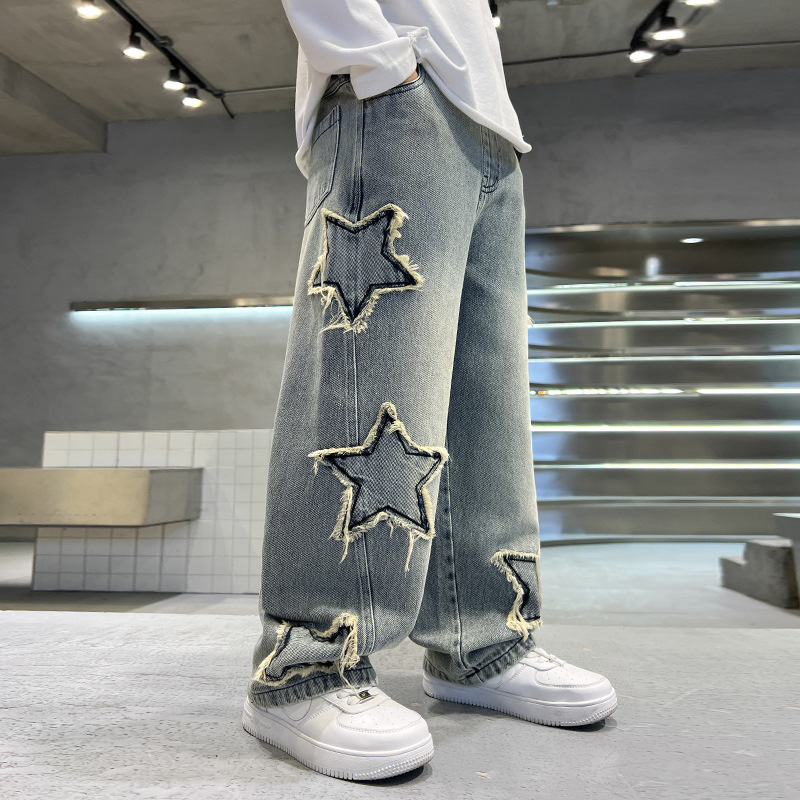 【외국 무역용】중대형 남아용 청바지 2025 봄 가을 아동복 가을 겨울 기모 처리된 일자 바지