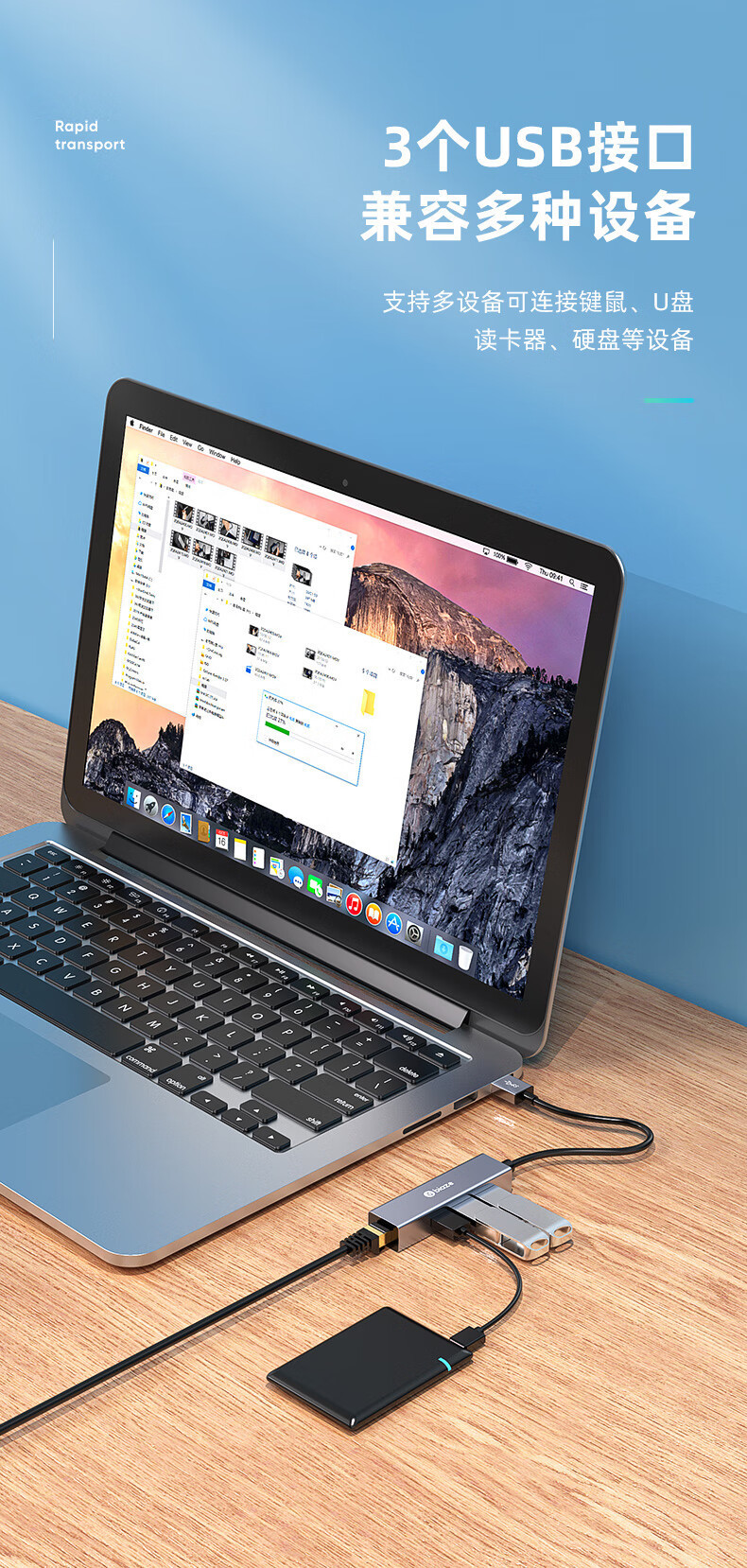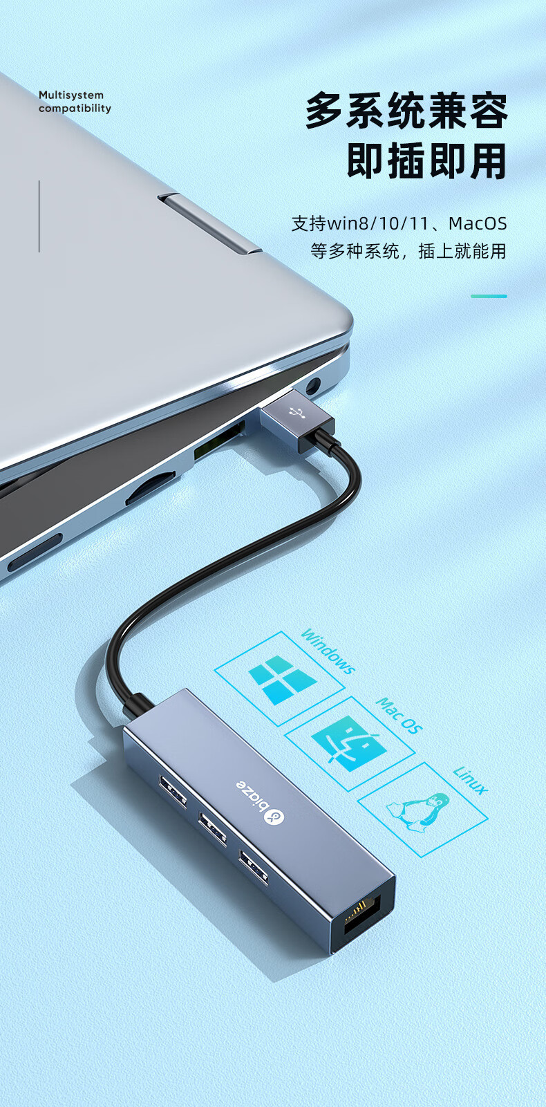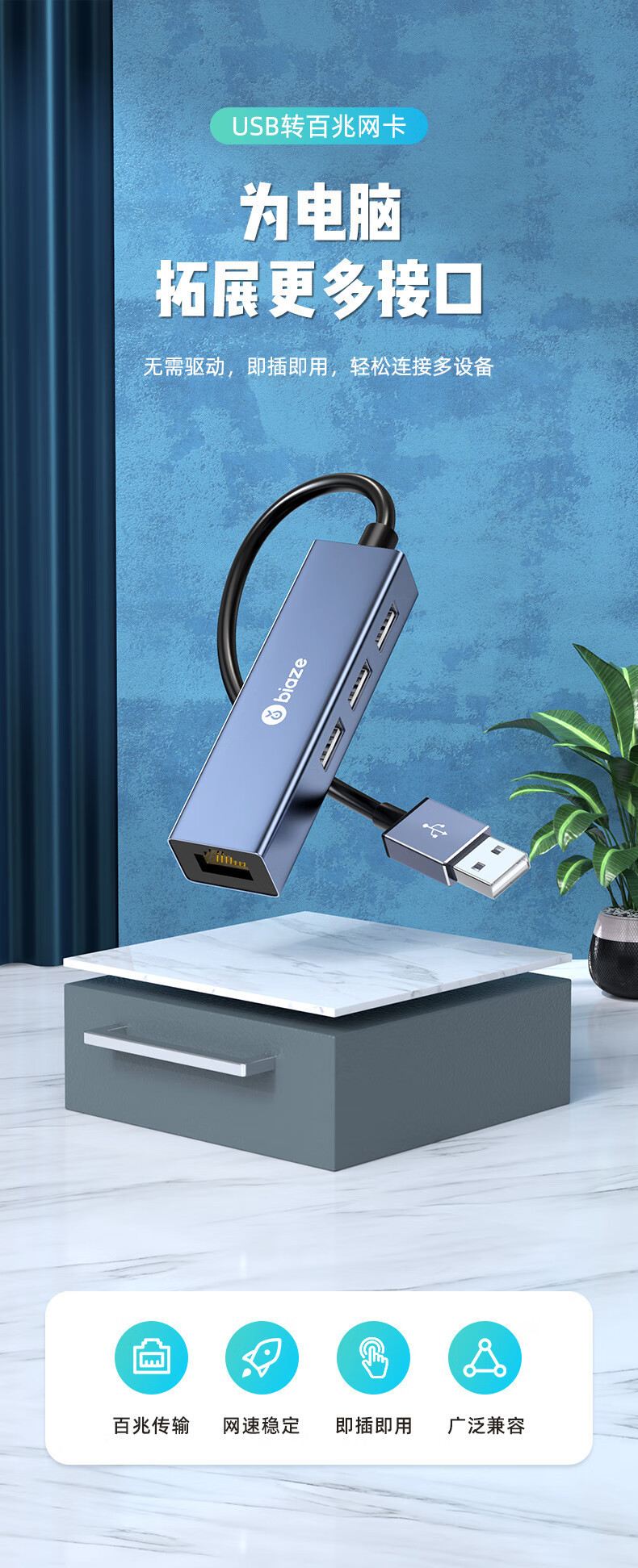 Biaz USB 100 m 네트워크 포트 도킹 스테이션 스플리터 허브 노트북 네트워크 케이블 어댑터스토어 가기