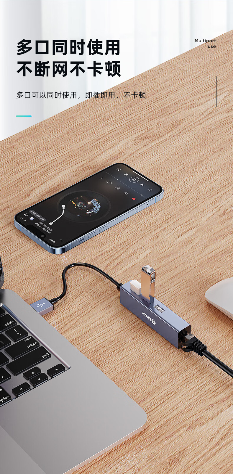 Biaz USB 100 m 네트워크 포트 도킹 스테이션 스플리터 허브 노트북 네트워크 케이블 어댑터