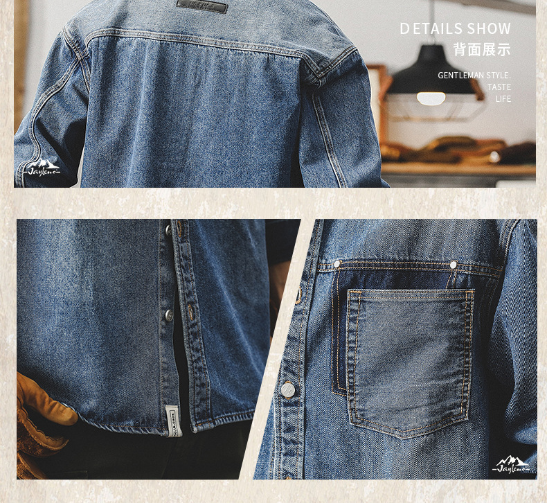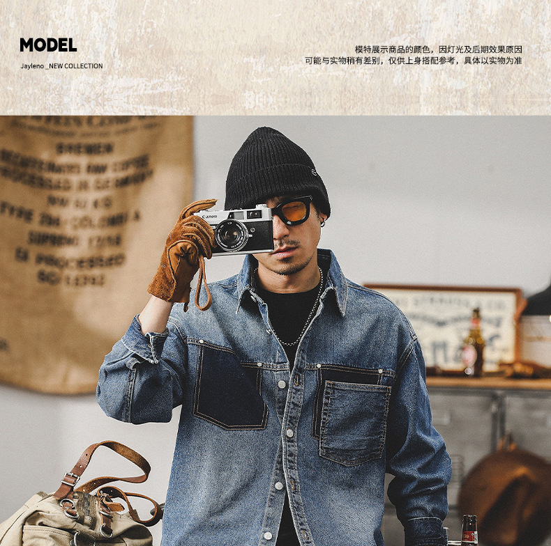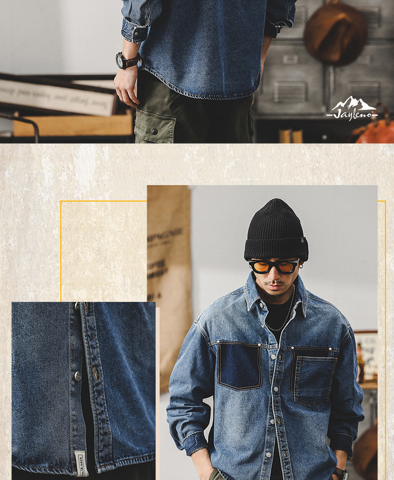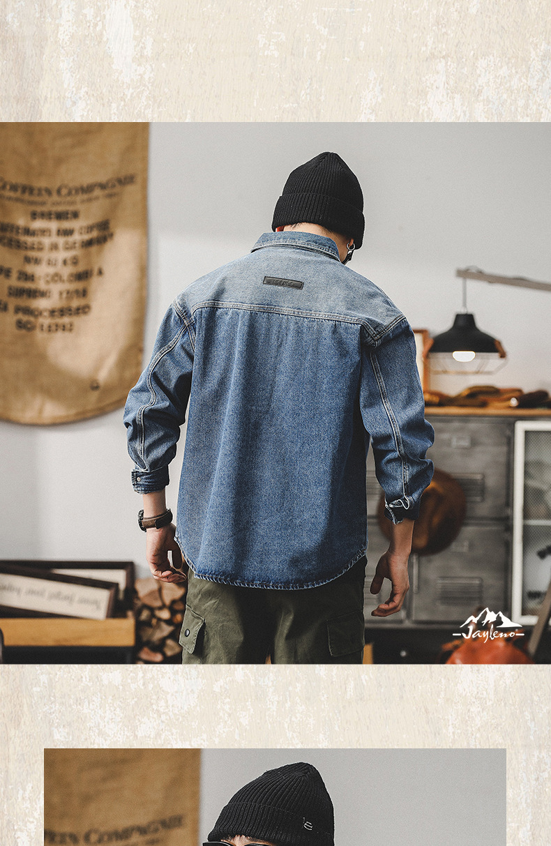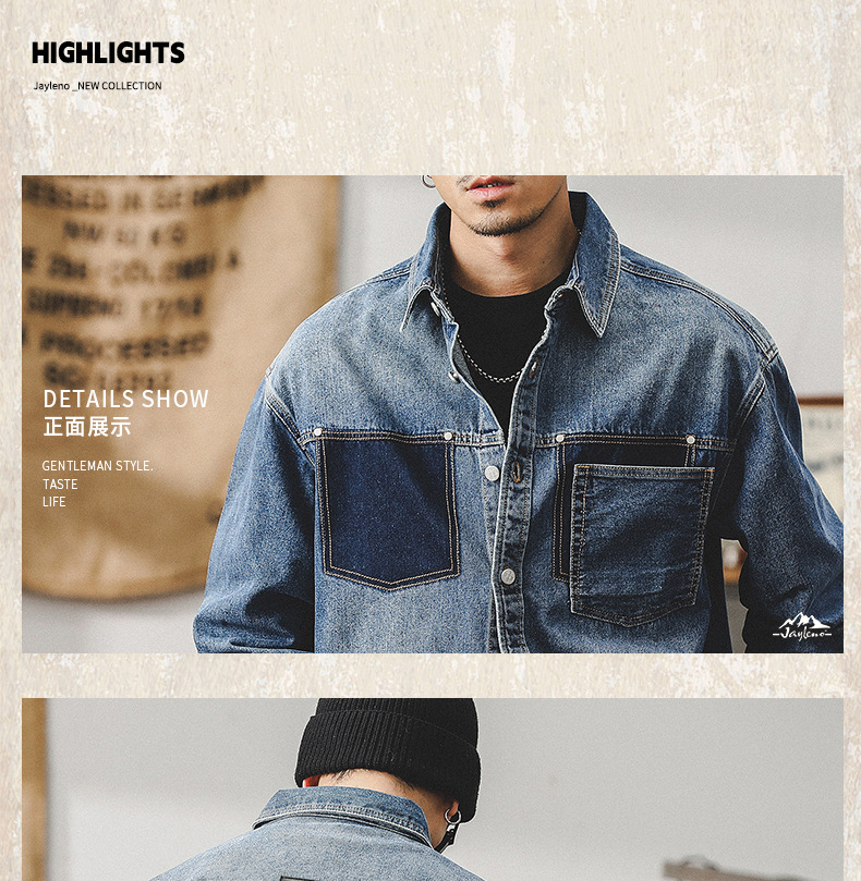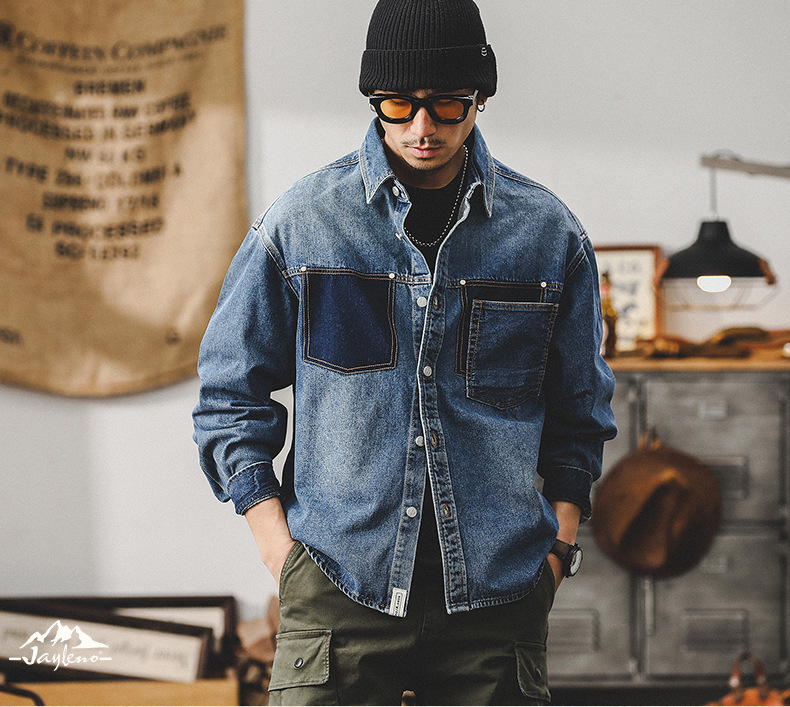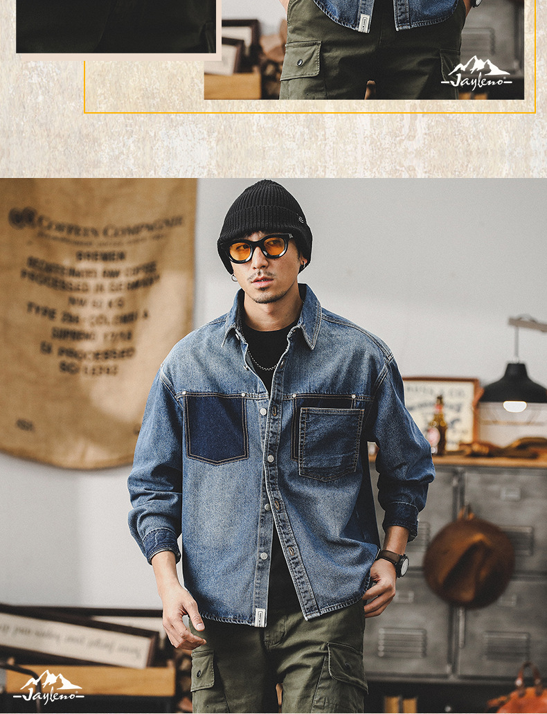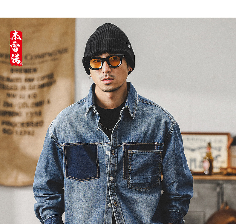 가을 신상 데님 재킷 남성용 봄 가을 스타일 트렌디 브랜드 고급스러운 멋진 워크웨어 재킷 디자인 긴팔 셔츠스토어 가기