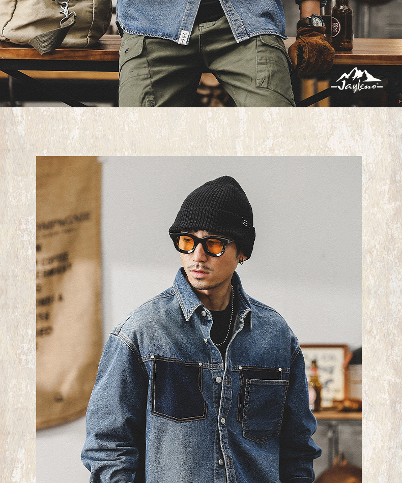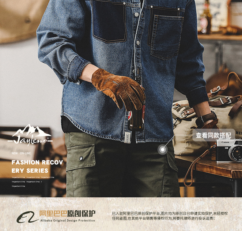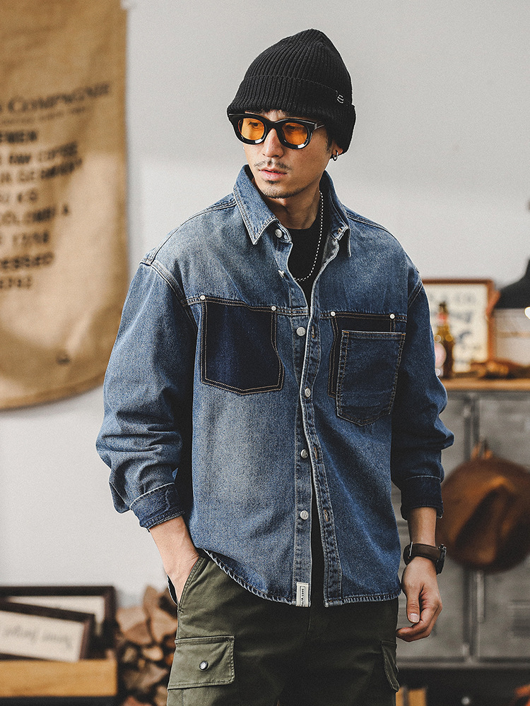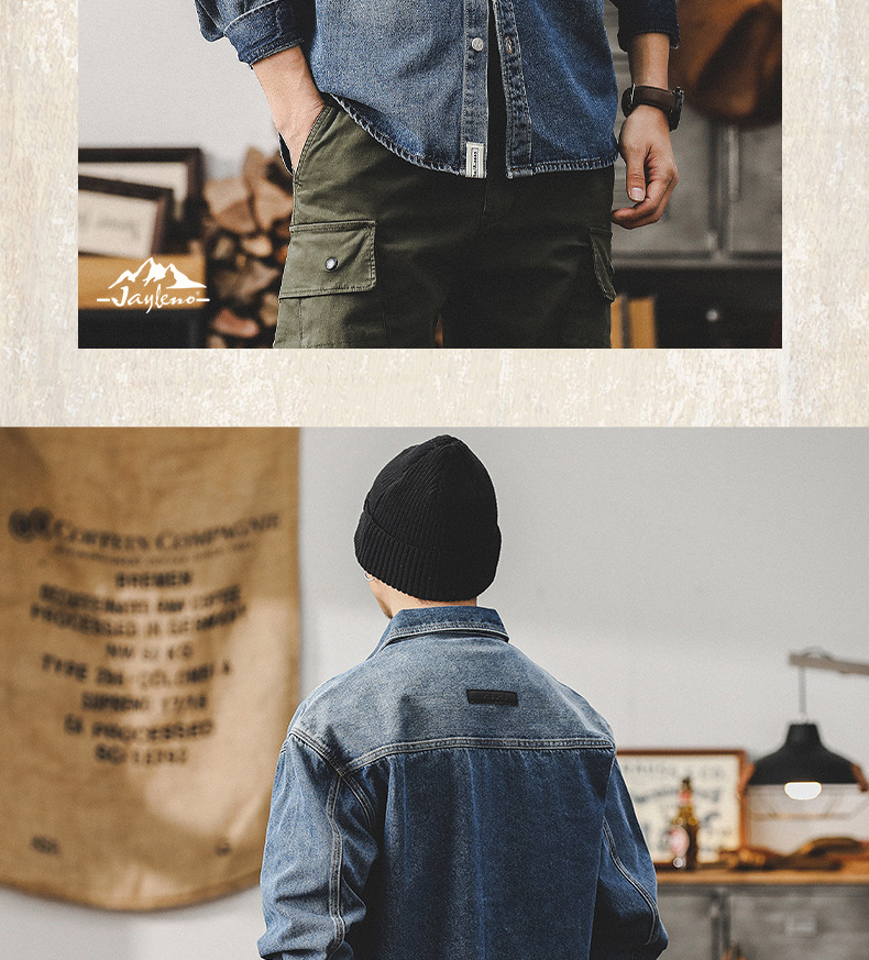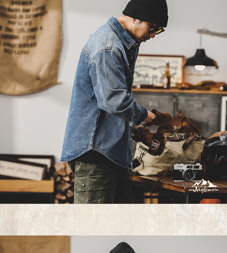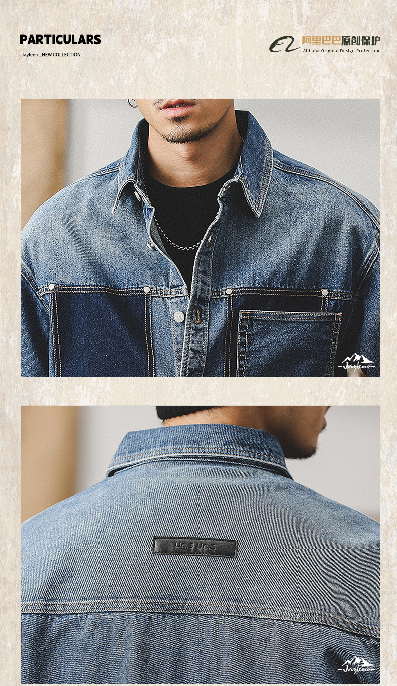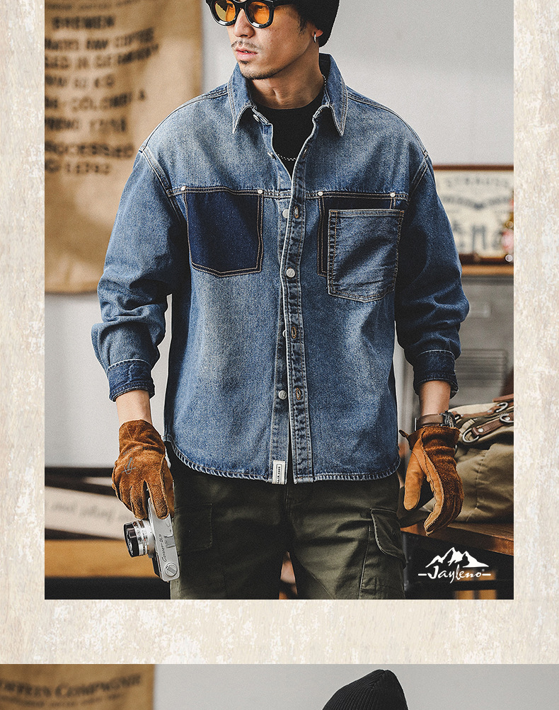 가을 신상 데님 재킷 남성용 봄 가을 스타일 트렌디 브랜드 고급스러운 멋진 워크웨어 재킷 디자인 긴팔 셔츠스토어 가기