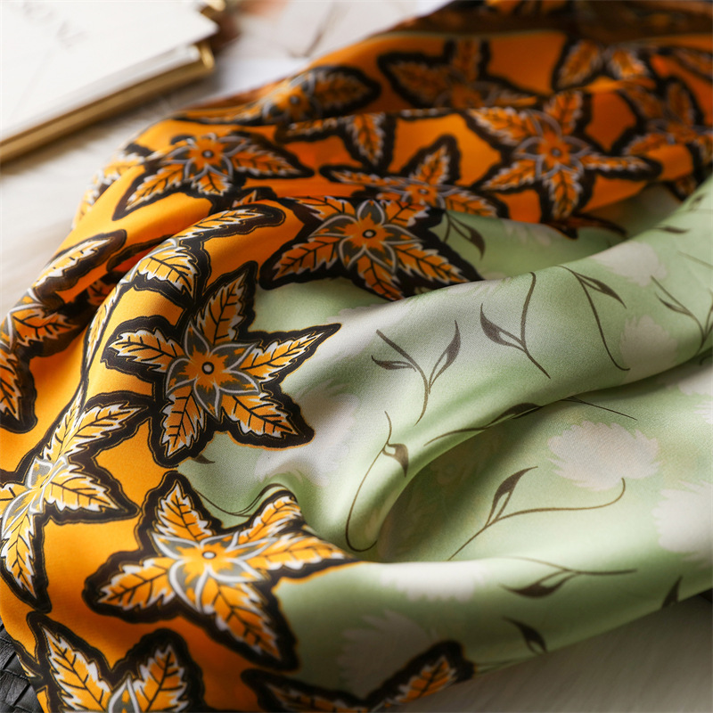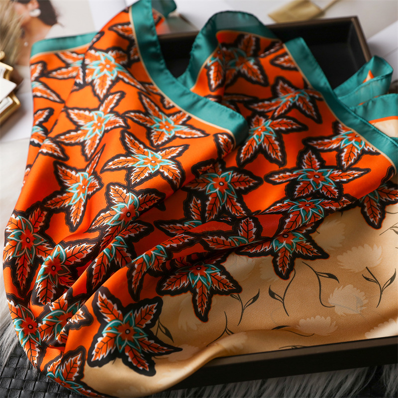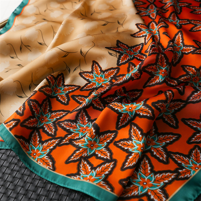 패션 바느질 오렌지 메이플 리프 인공 실크 70 평방 스카프 봄과 여름 새로운 인쇄 실크 스카프 여성용 스카프 자외선 차단제 스카프