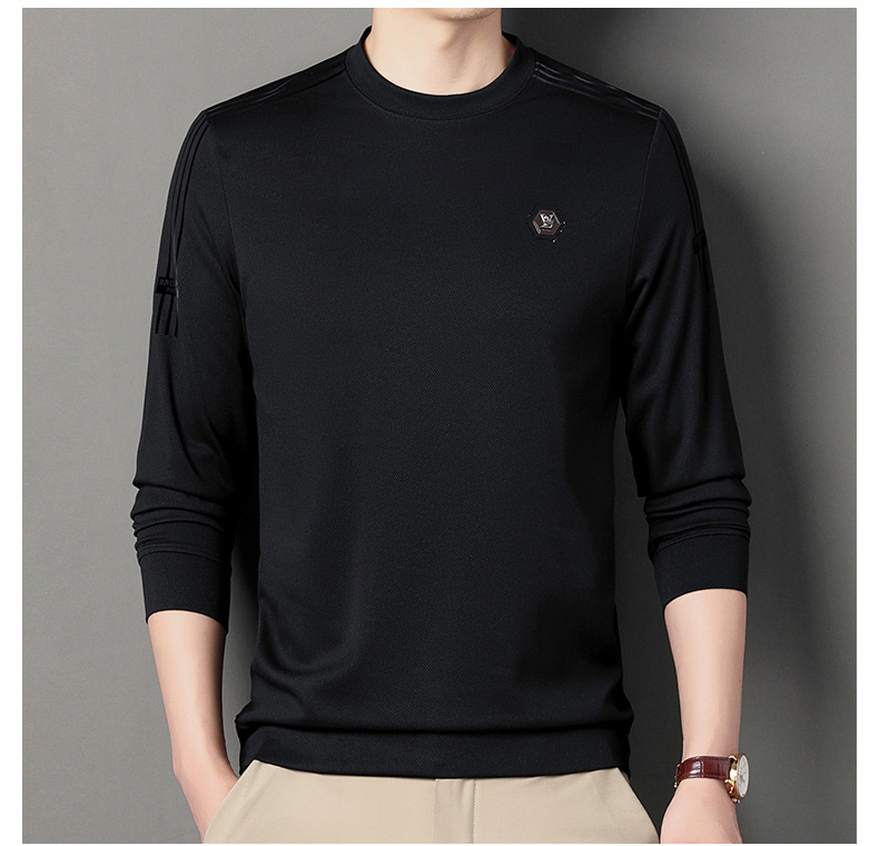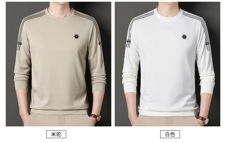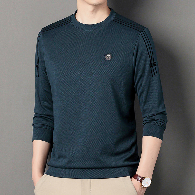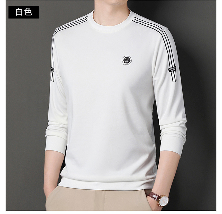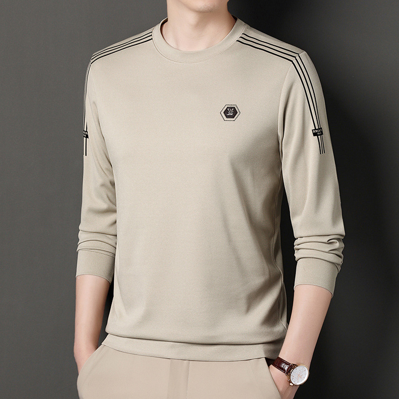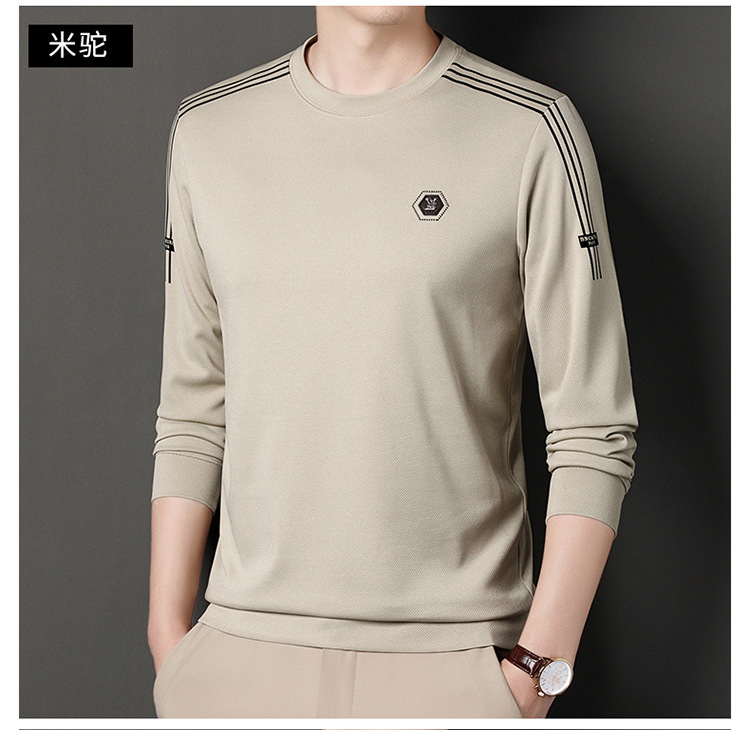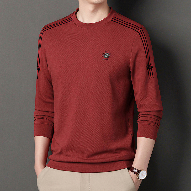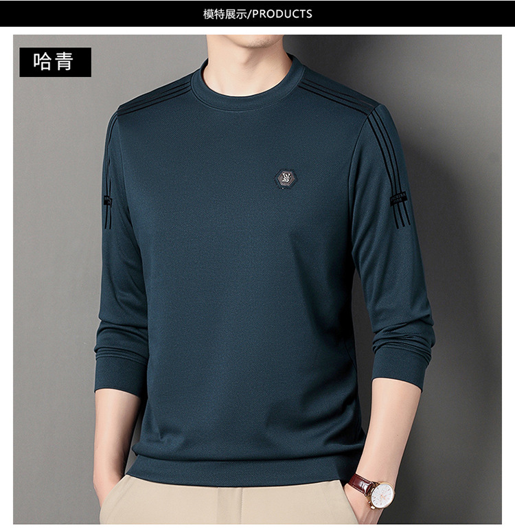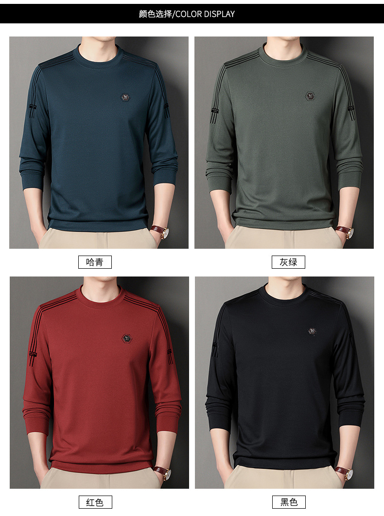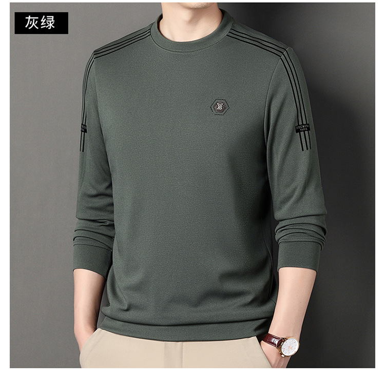 봄 가을과 겨울 스웨터 남자의 유행 유행 브랜드 중년 및 젊은 사람들의 긴팔 캐주얼 남성 티셔츠 둥근 목면베이스 셔츠