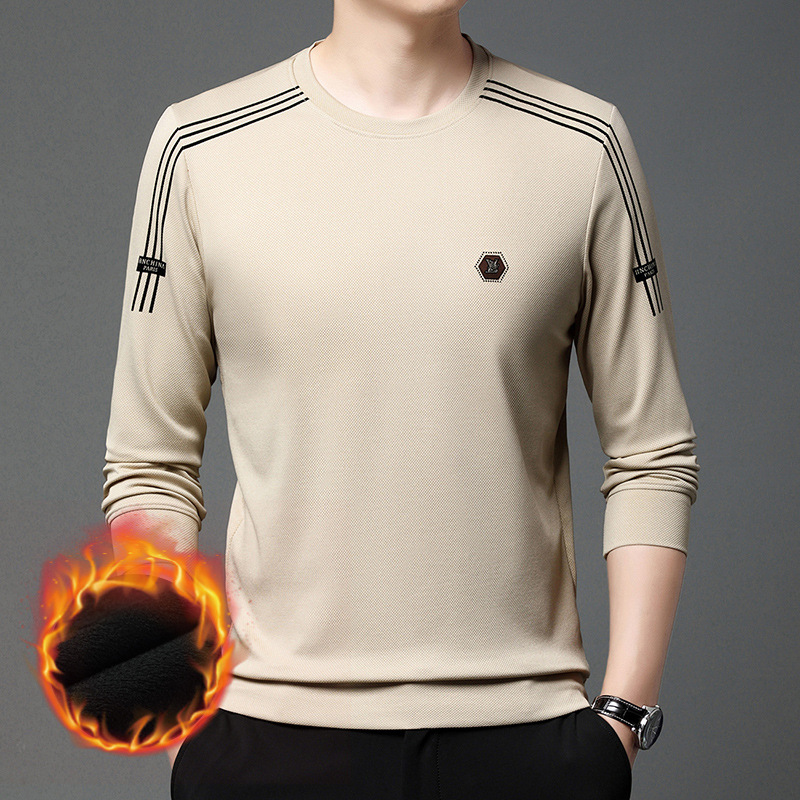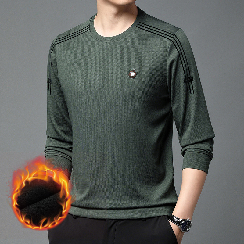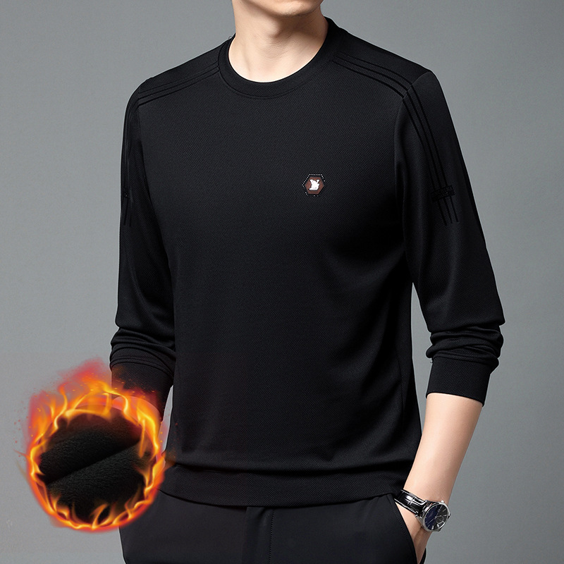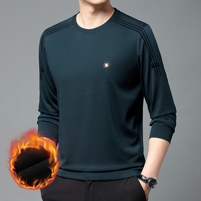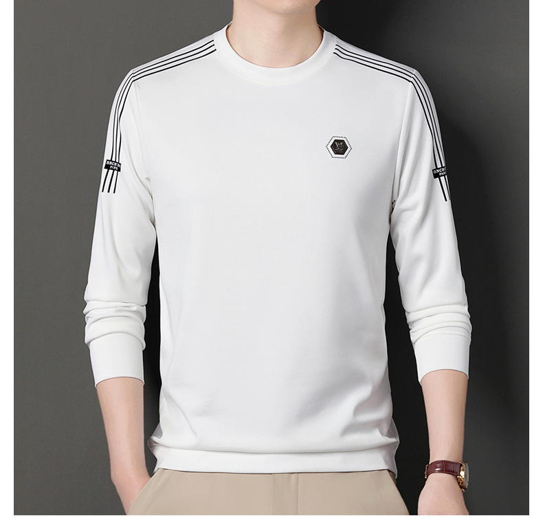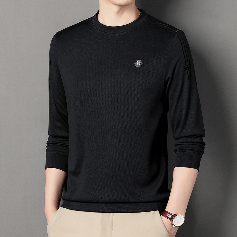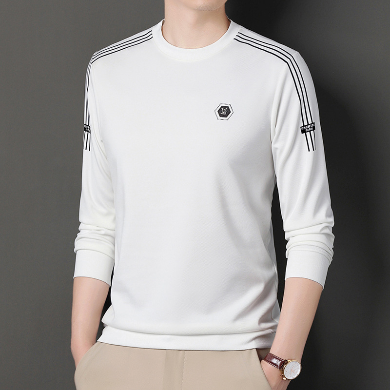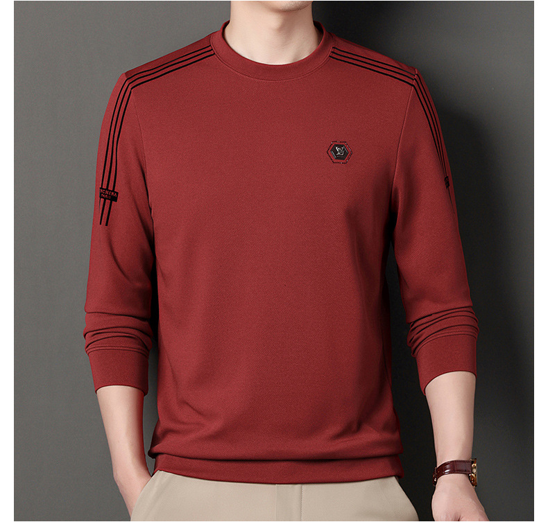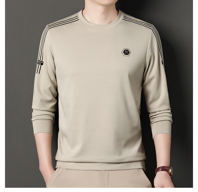 봄 가을과 겨울 스웨터 남자의 유행 유행 브랜드 중년 및 젊은 사람들의 긴팔 캐주얼 남성 티셔츠 둥근 목면베이스 셔츠