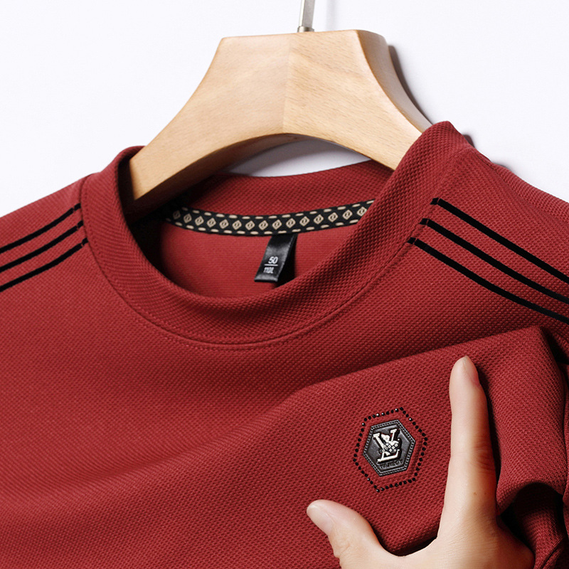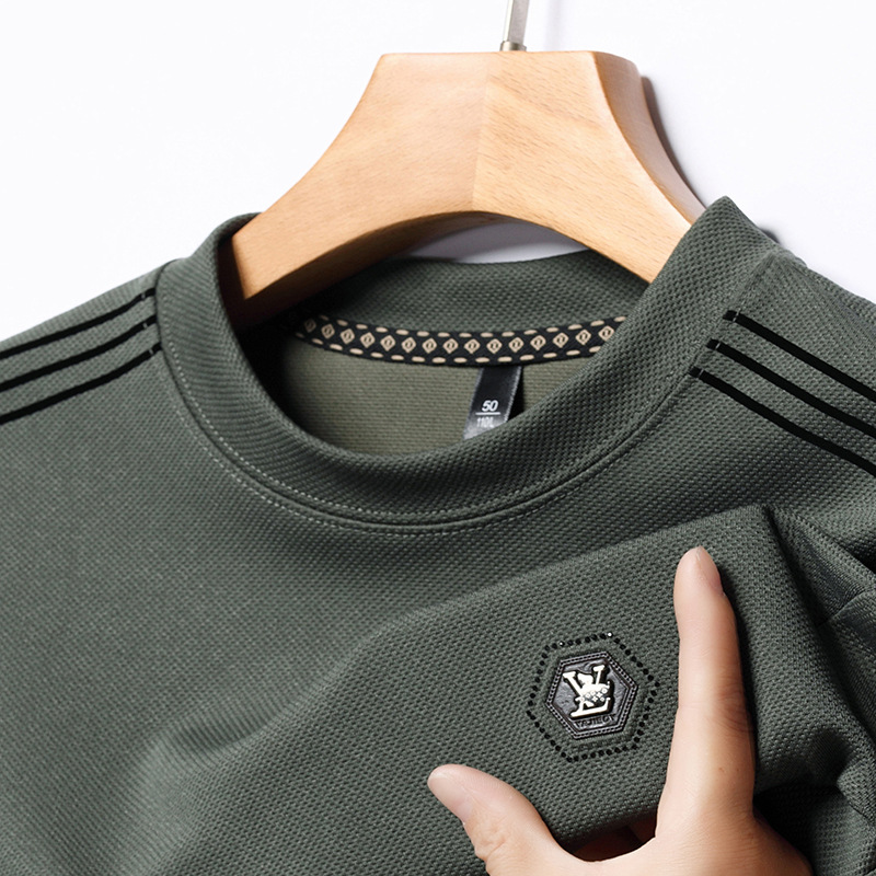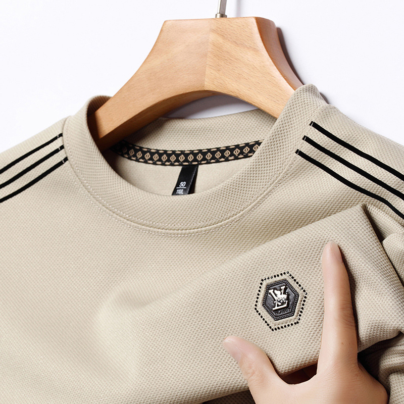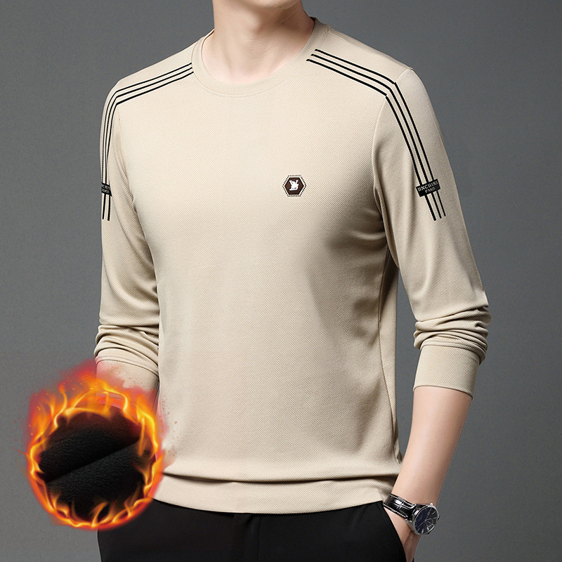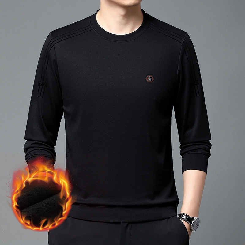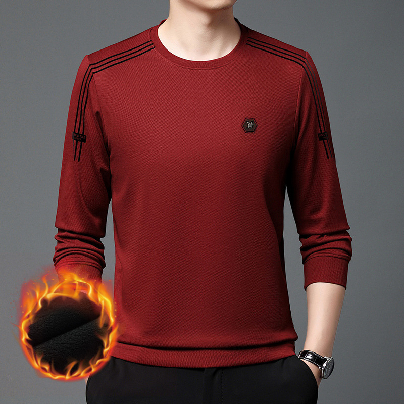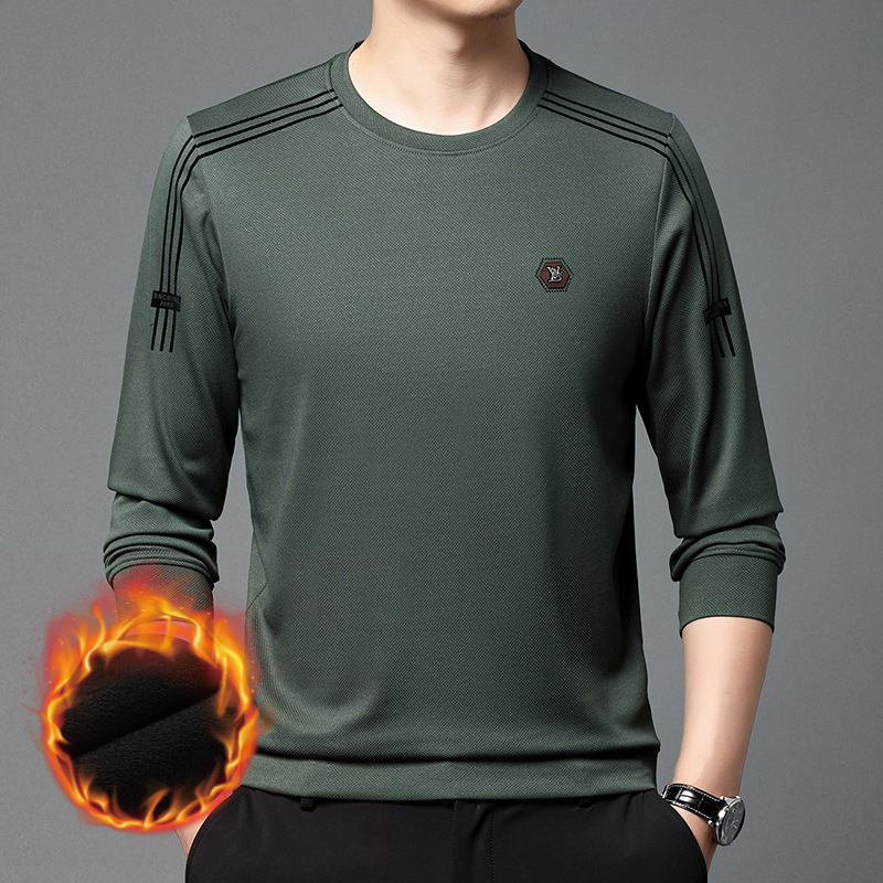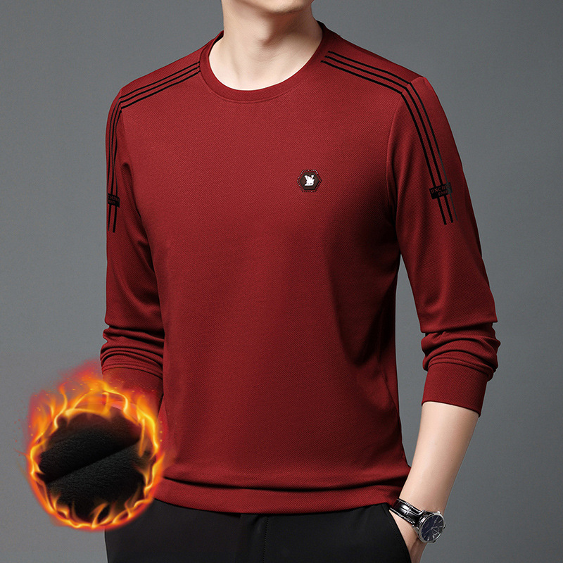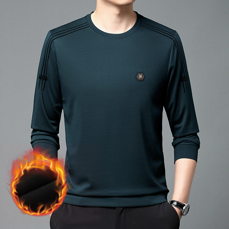 봄 가을과 겨울 스웨터 남자의 유행 유행 브랜드 중년 및 젊은 사람들의 긴팔 캐주얼 남성 티셔츠 둥근 목면베이스 셔츠