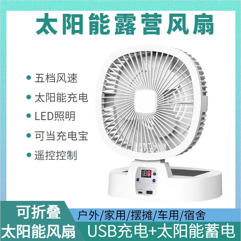 야외 캠핑 팬 충전식 데스크탑 팬 대형 바람 사무실 기숙사 휴대용 접이식 태양 광 팬