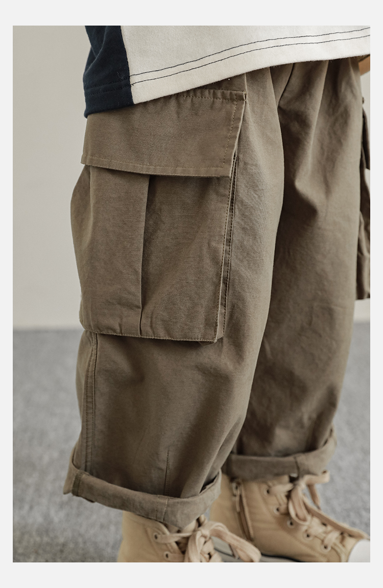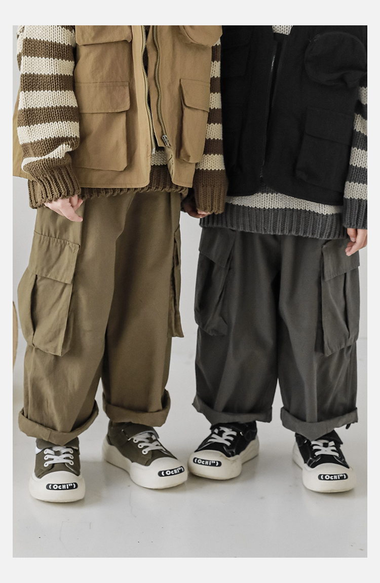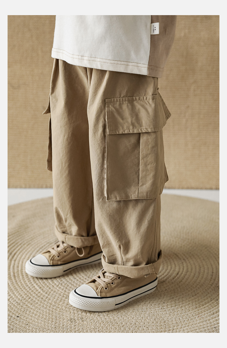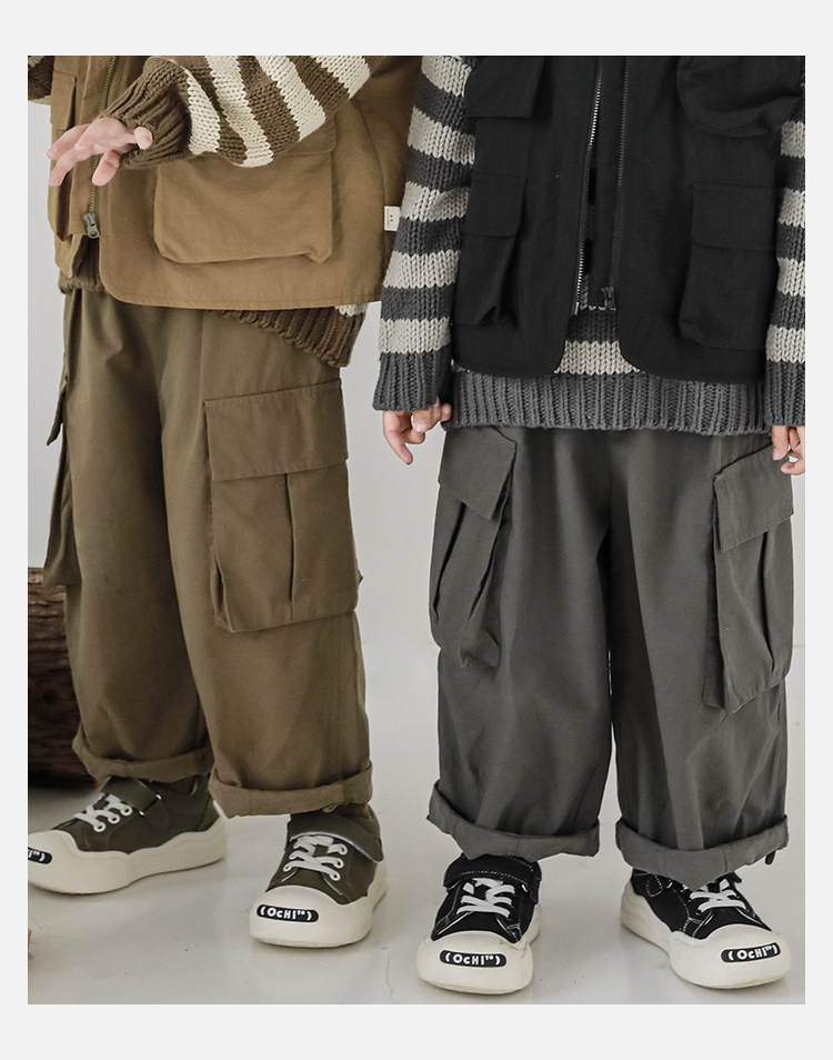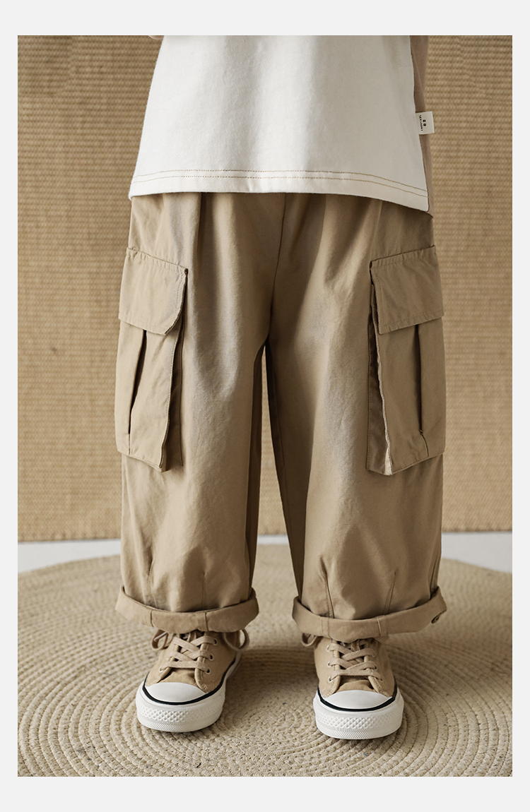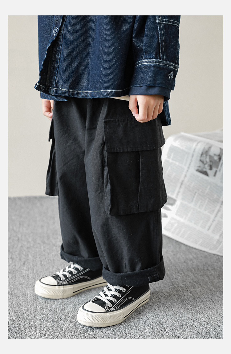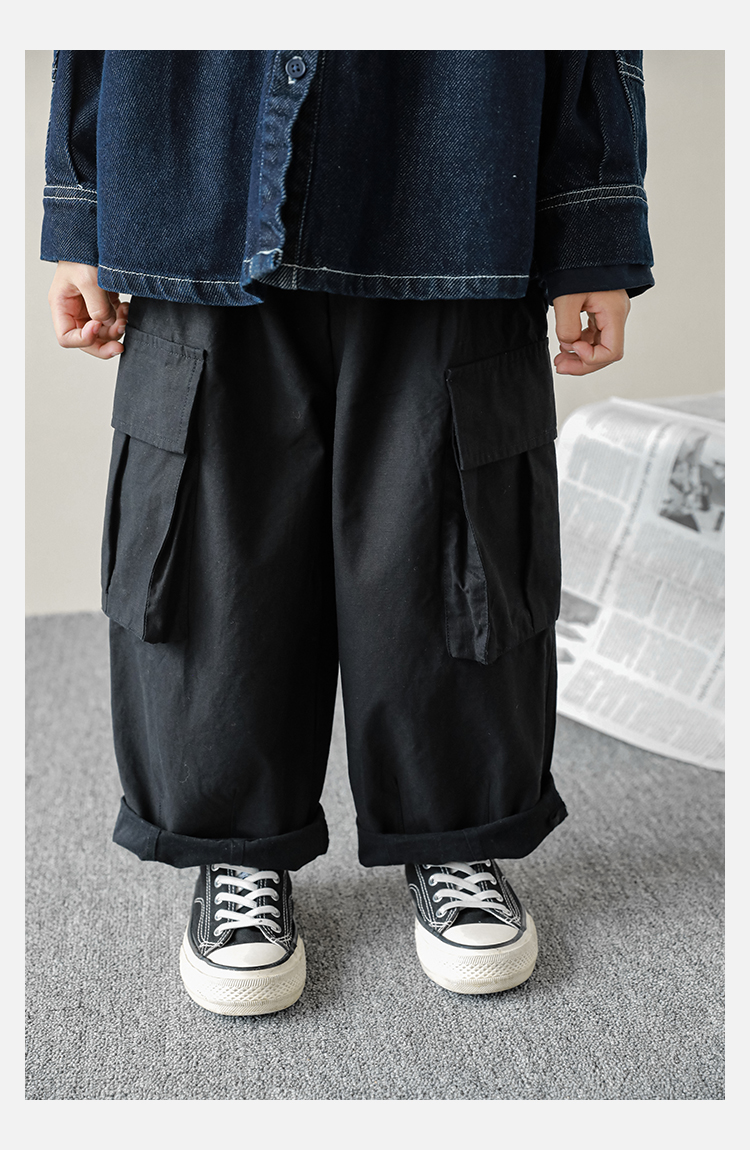 Wuri Boys의 작업복 캐주얼 바지 플립 포켓 느슨한 스트레이트 바지 봄과 가을 새로운 어린이 트렌디 바지스토어 가기