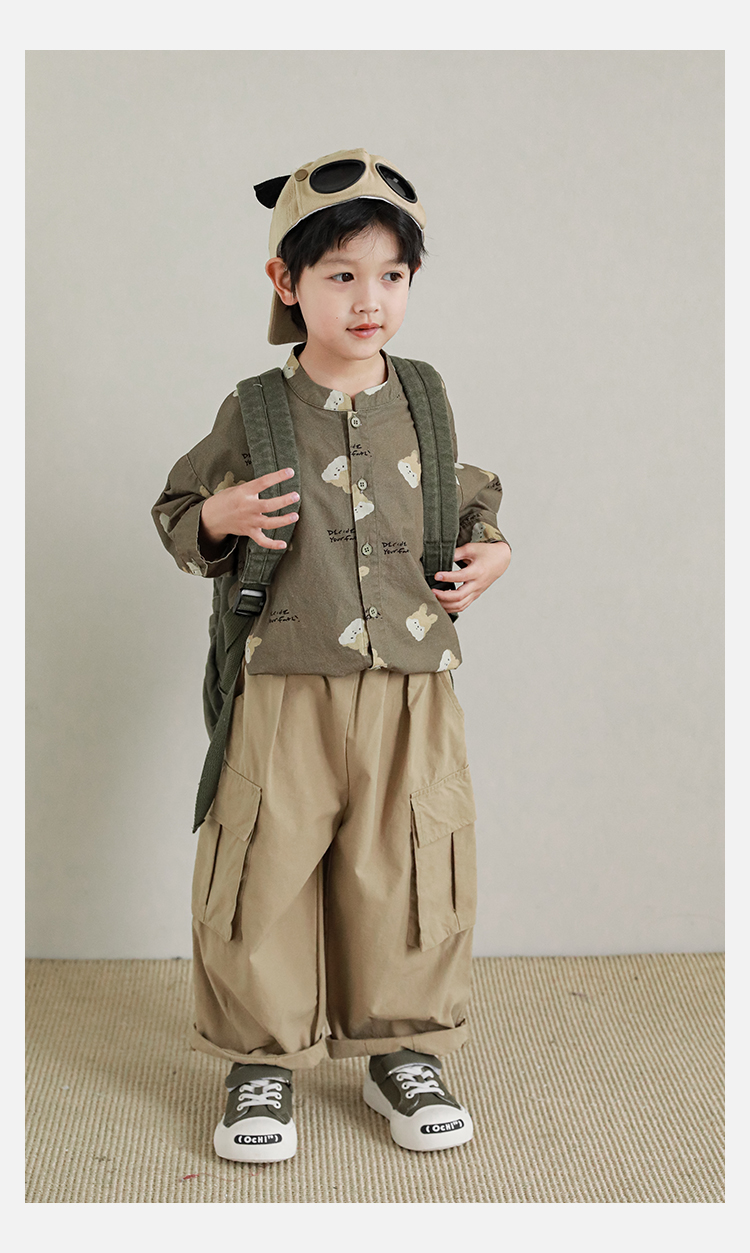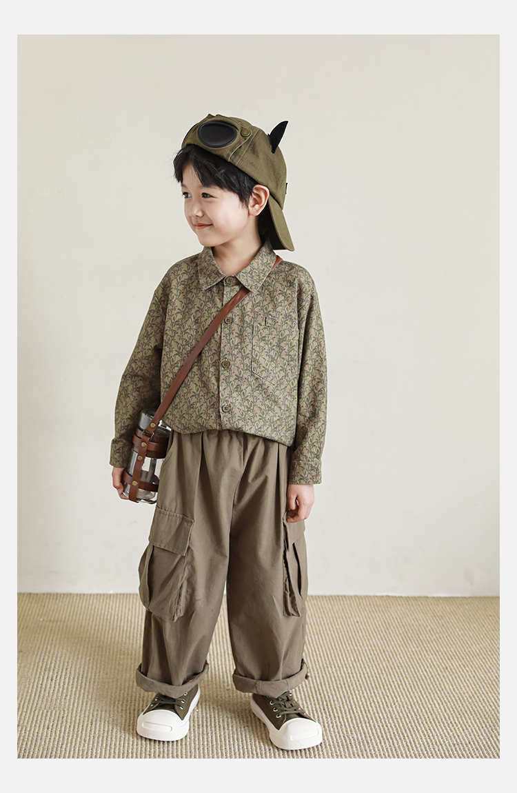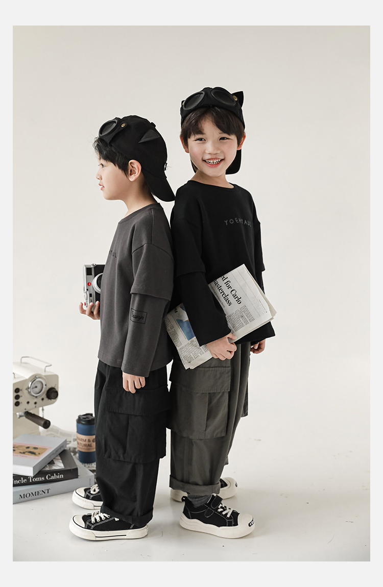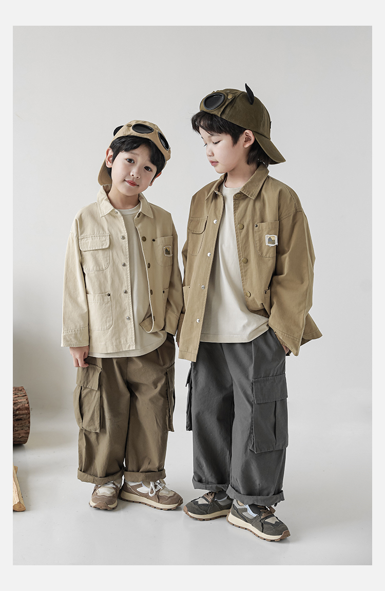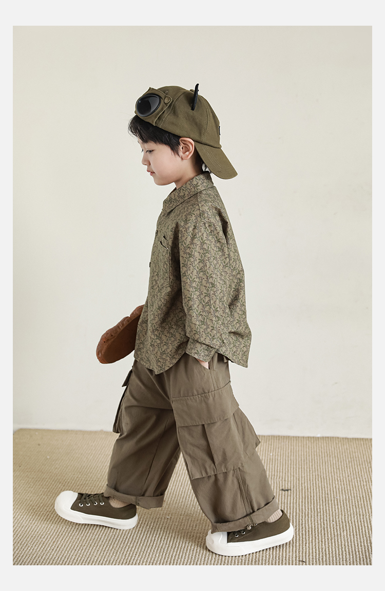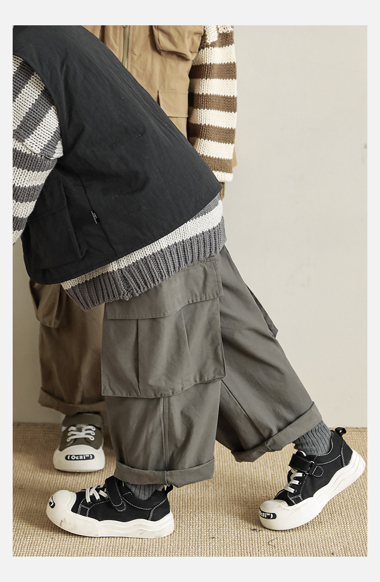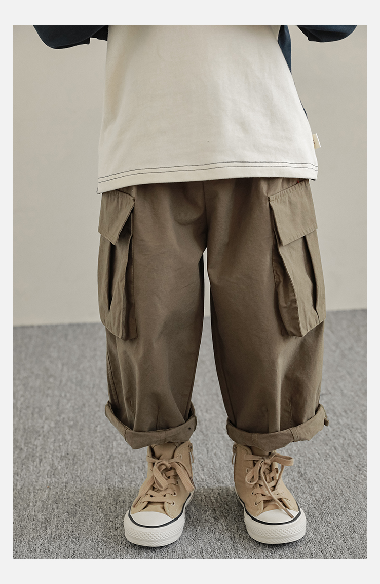 Wuri Boys의 작업복 캐주얼 바지 플립 포켓 느슨한 스트레이트 바지 봄과 가을 새로운 어린이 트렌디 바지스토어 가기