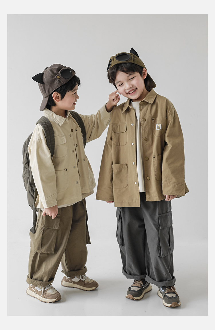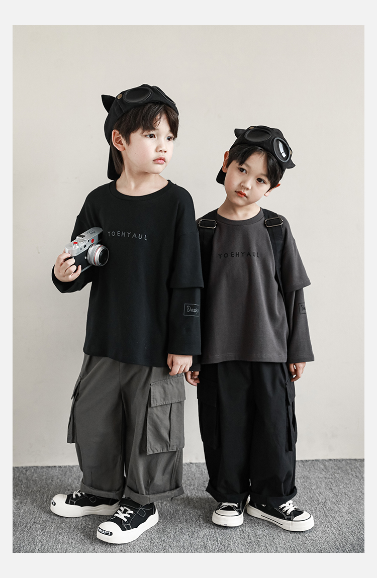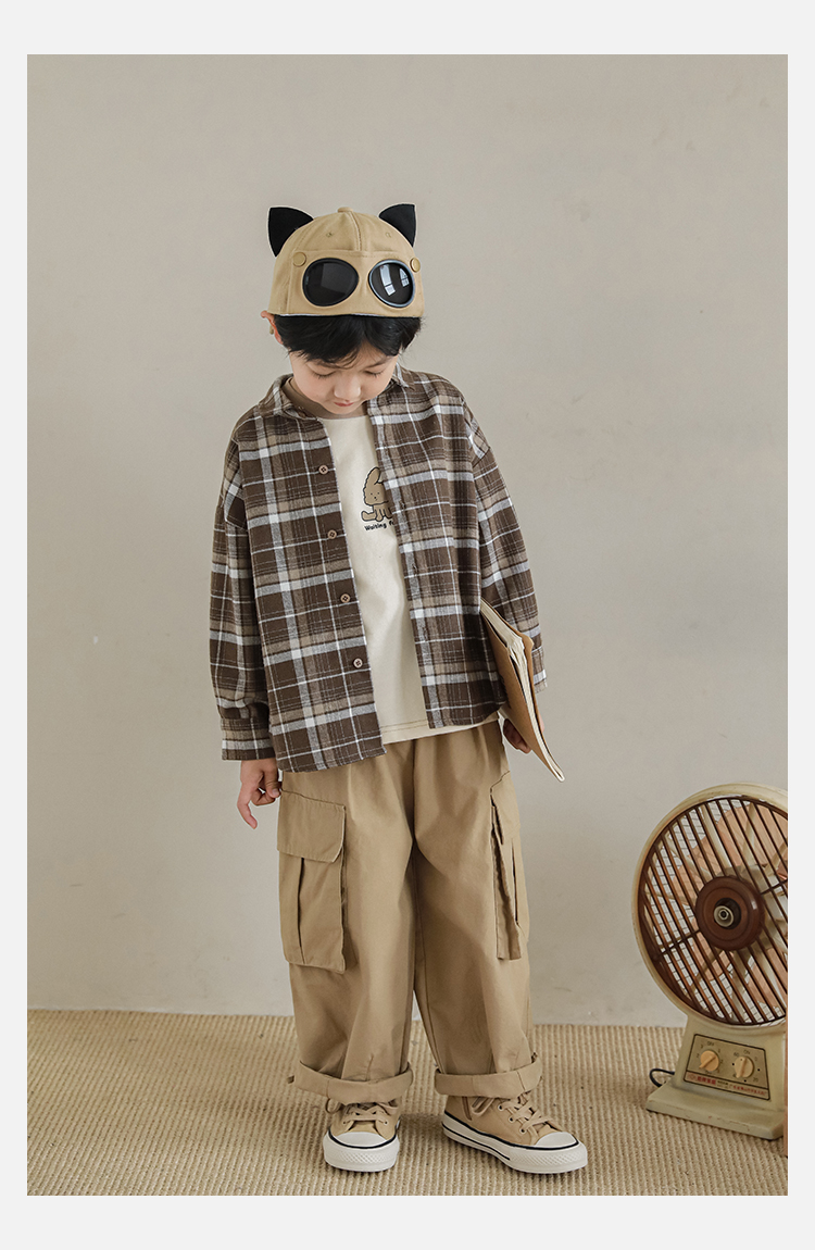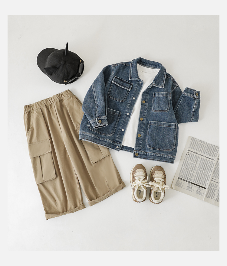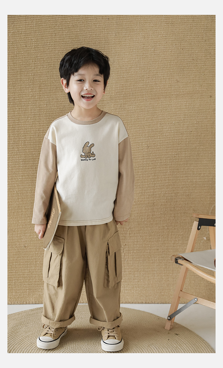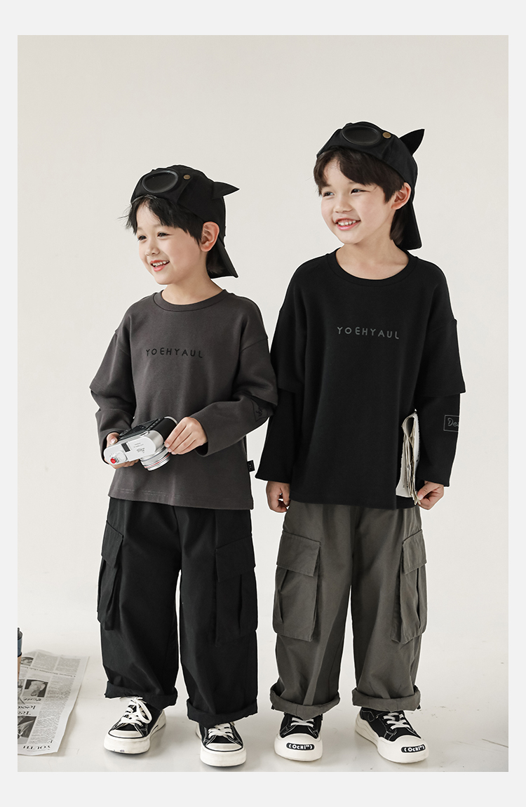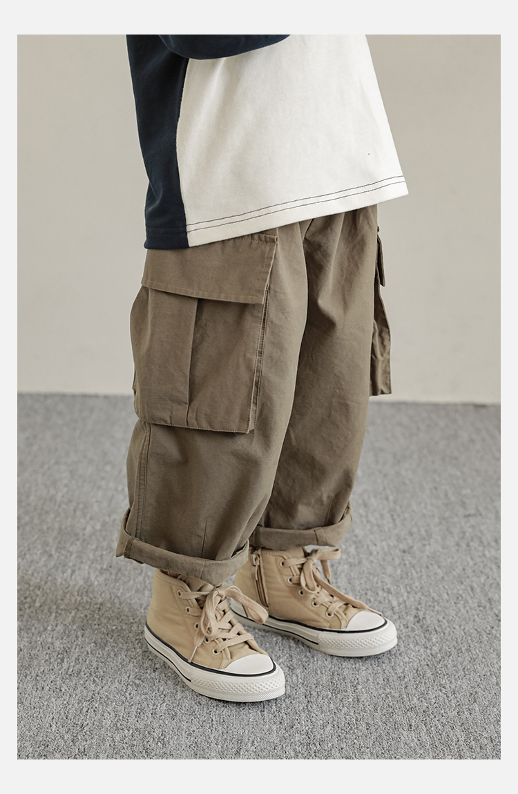 Wuri Boys의 작업복 캐주얼 바지 플립 포켓 느슨한 스트레이트 바지 봄과 가을 새로운 어린이 트렌디 바지스토어 가기