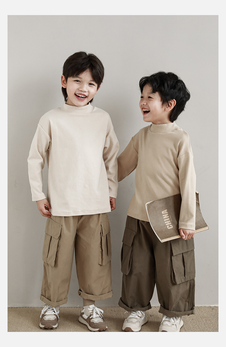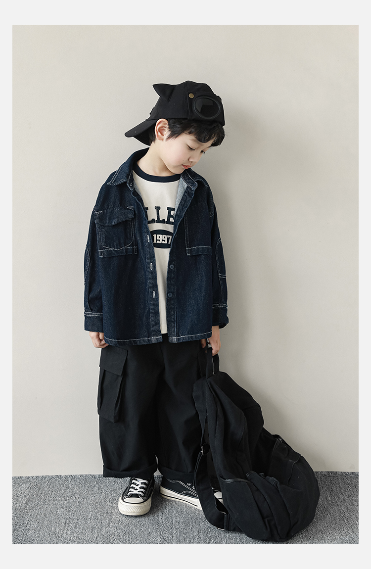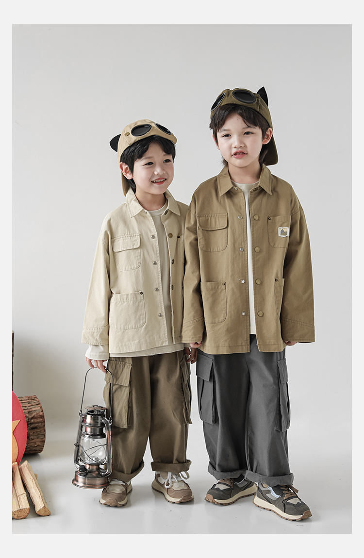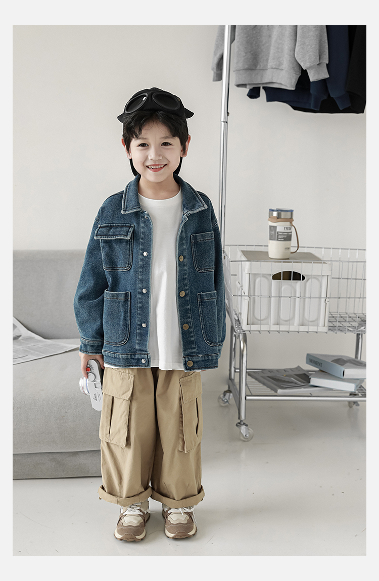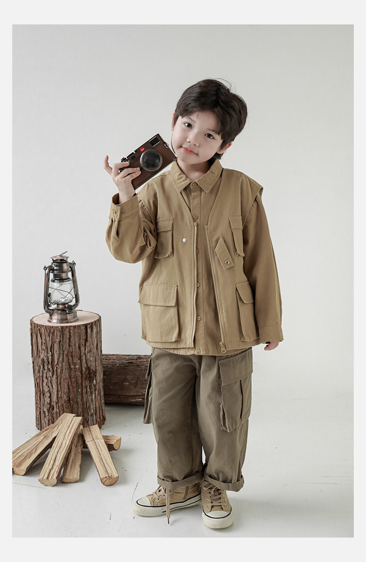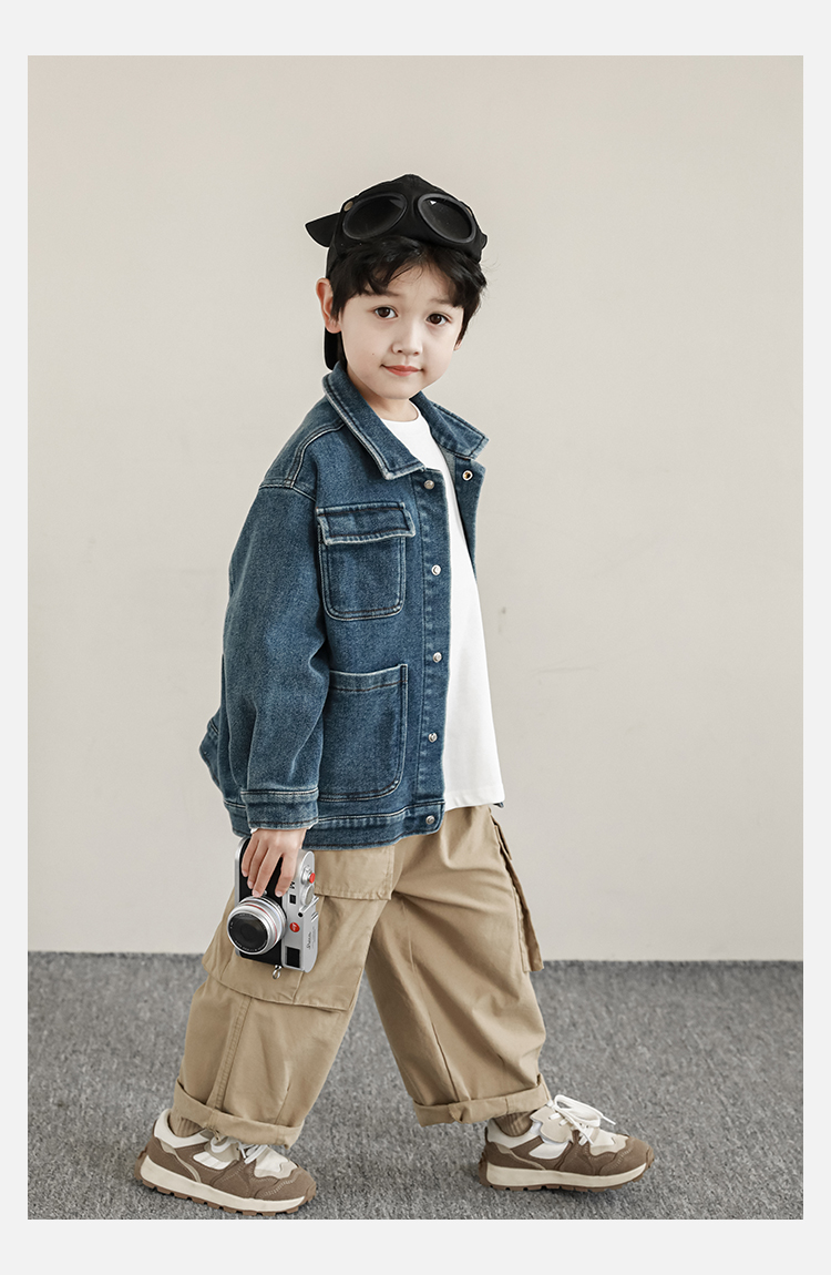 Wuri Boys의 작업복 캐주얼 바지 플립 포켓 느슨한 스트레이트 바지 봄과 가을 새로운 어린이 트렌디 바지스토어 가기