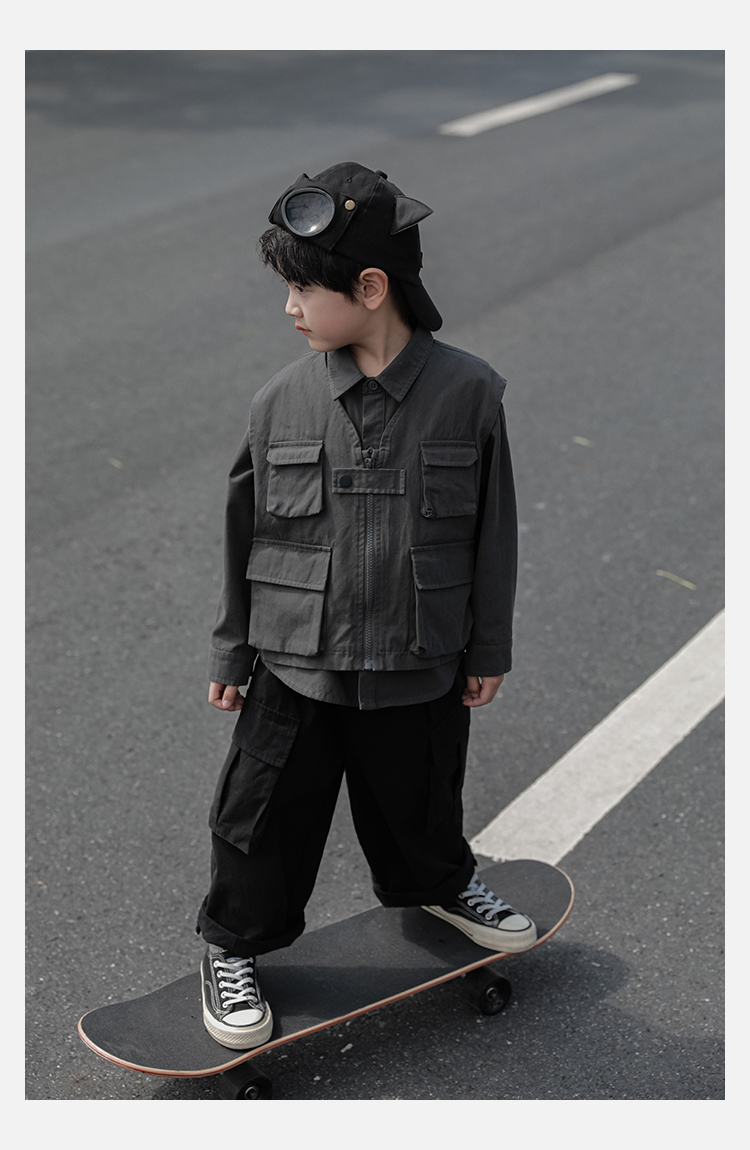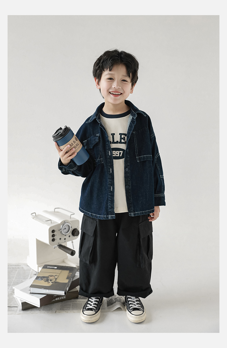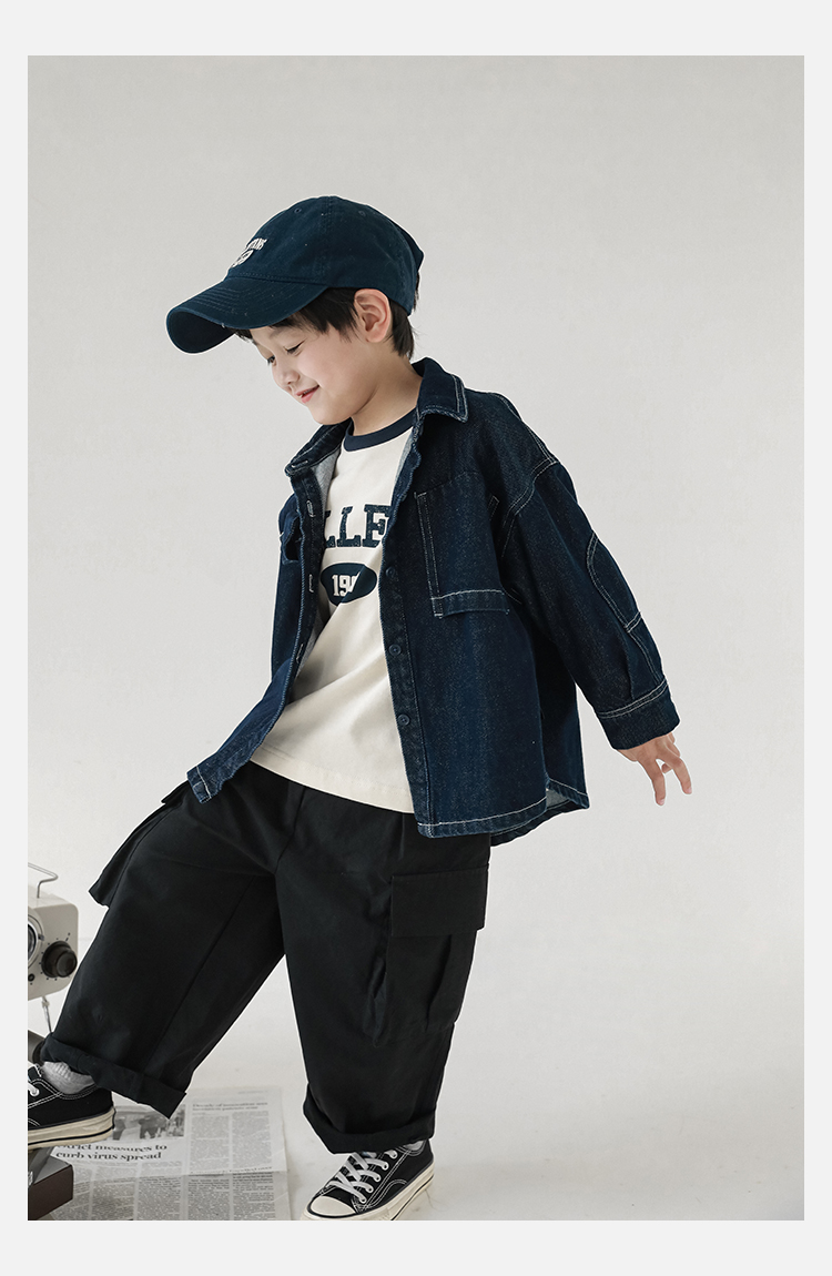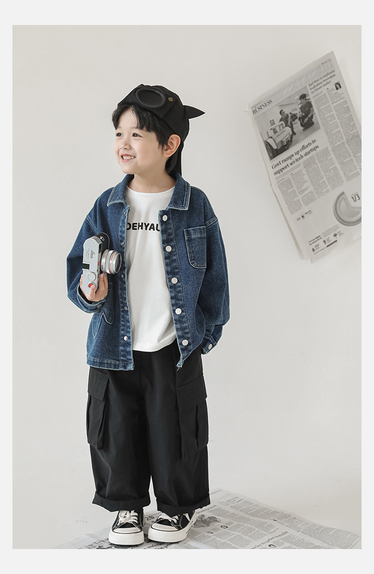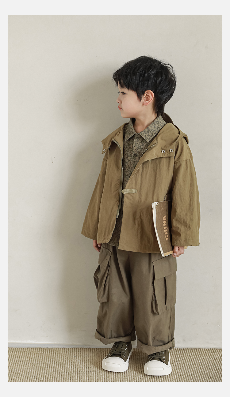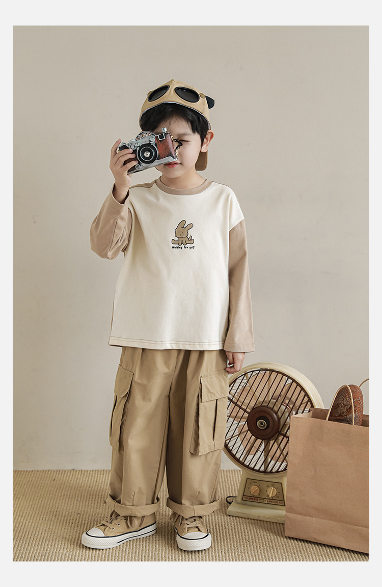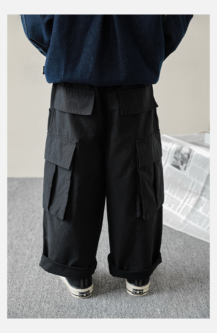 Wuri Boys의 작업복 캐주얼 바지 플립 포켓 느슨한 스트레이트 바지 봄과 가을 새로운 어린이 트렌디 바지스토어 가기