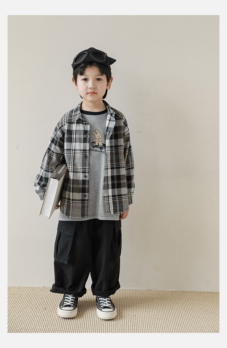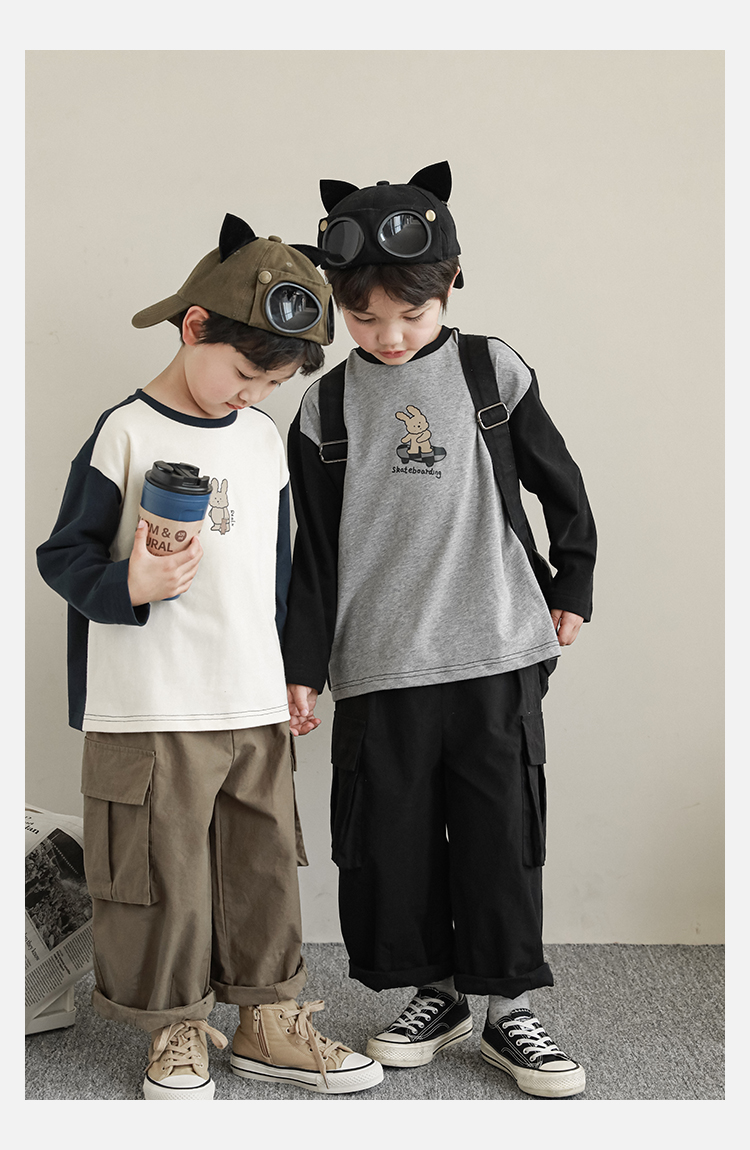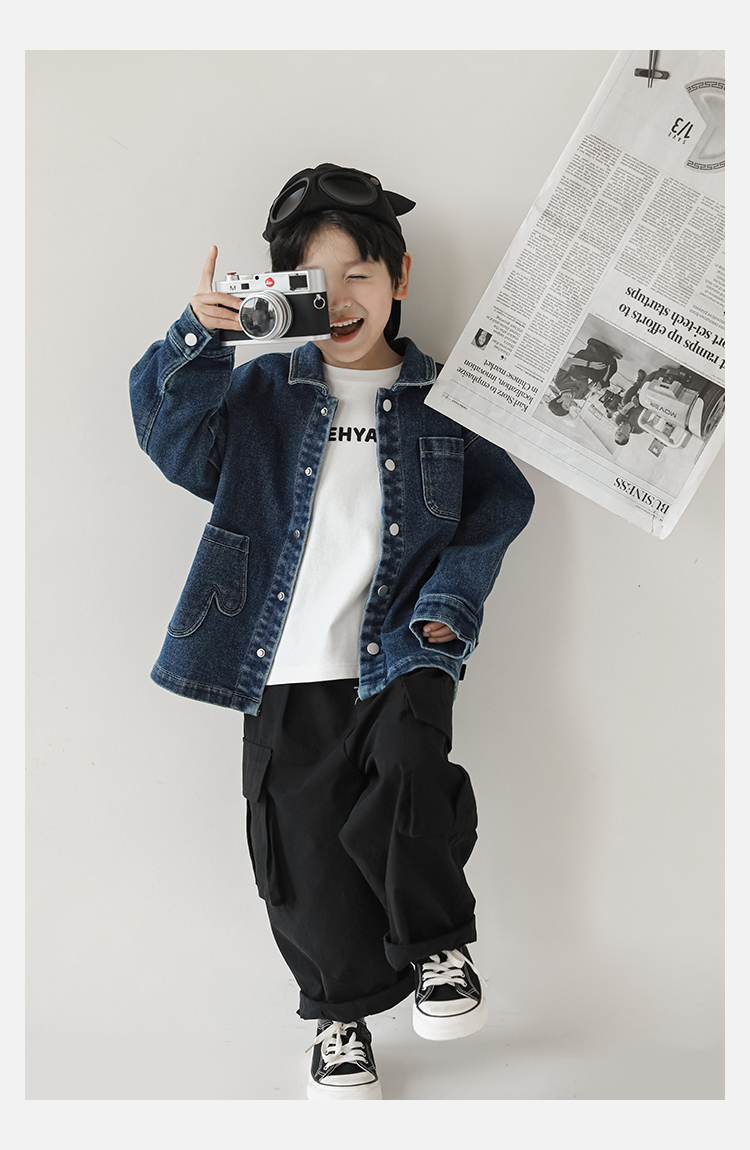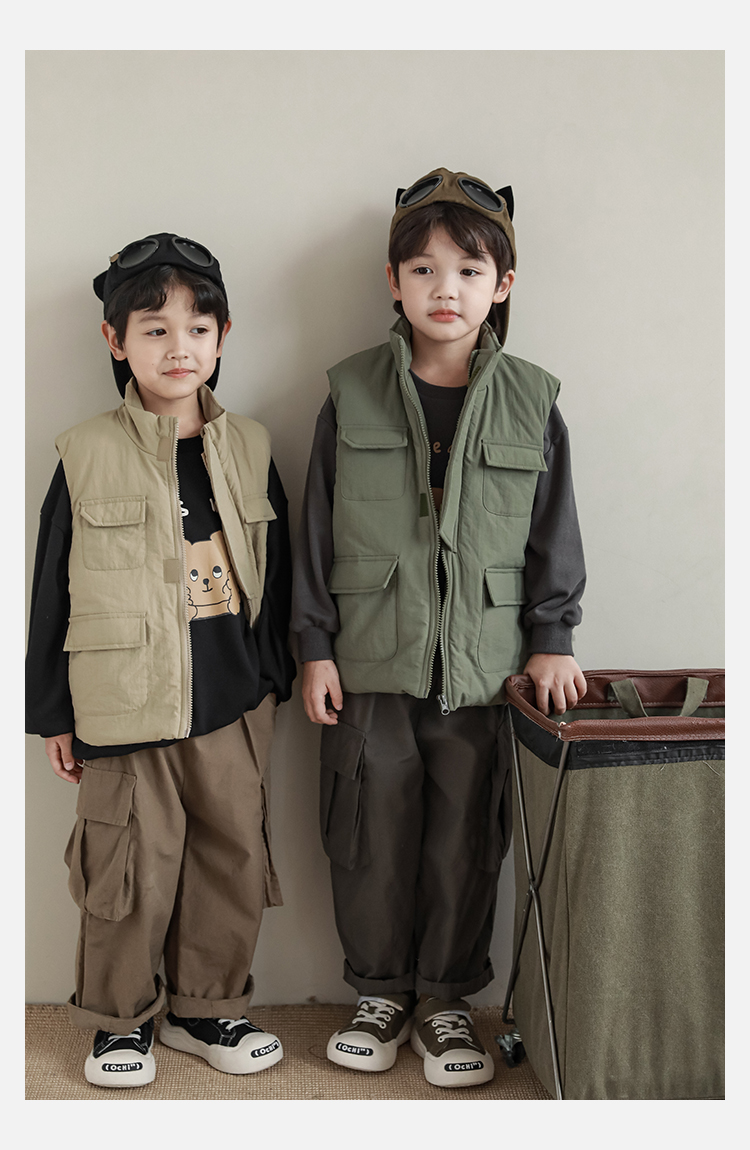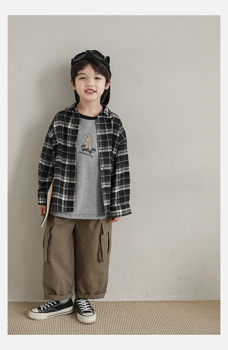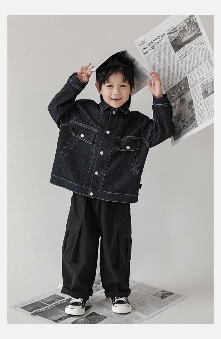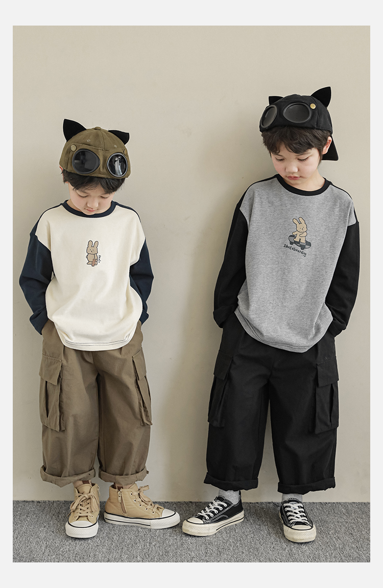 Wuri Boys의 작업복 캐주얼 바지 플립 포켓 느슨한 스트레이트 바지 봄과 가을 새로운 어린이 트렌디 바지스토어 가기