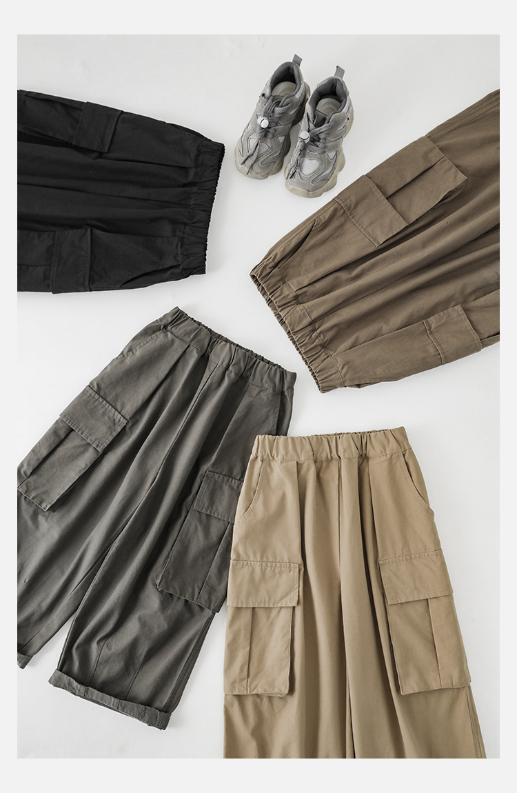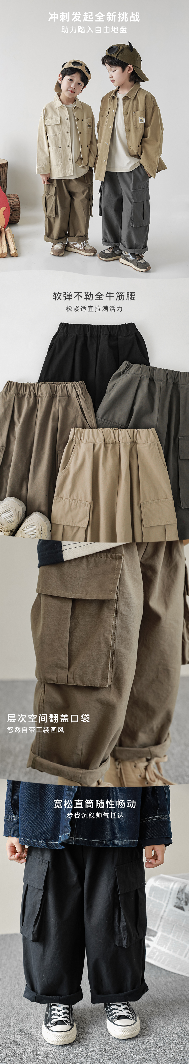 Wuri Boys의 작업복 캐주얼 바지 플립 포켓 느슨한 스트레이트 바지 봄과 가을 새로운 어린이 트렌디 바지