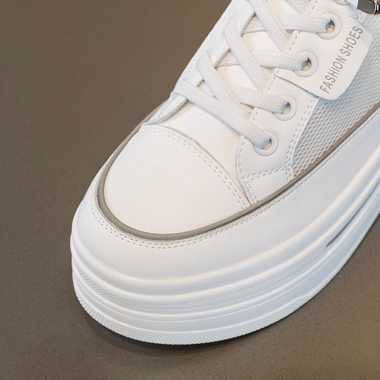 스니커즈 여성의 숨겨진 높이 여성 신발 플랫폼 2024 봄 정품 가죽 새로운 캐주얼 메쉬 작은 크기의 흰색 신발