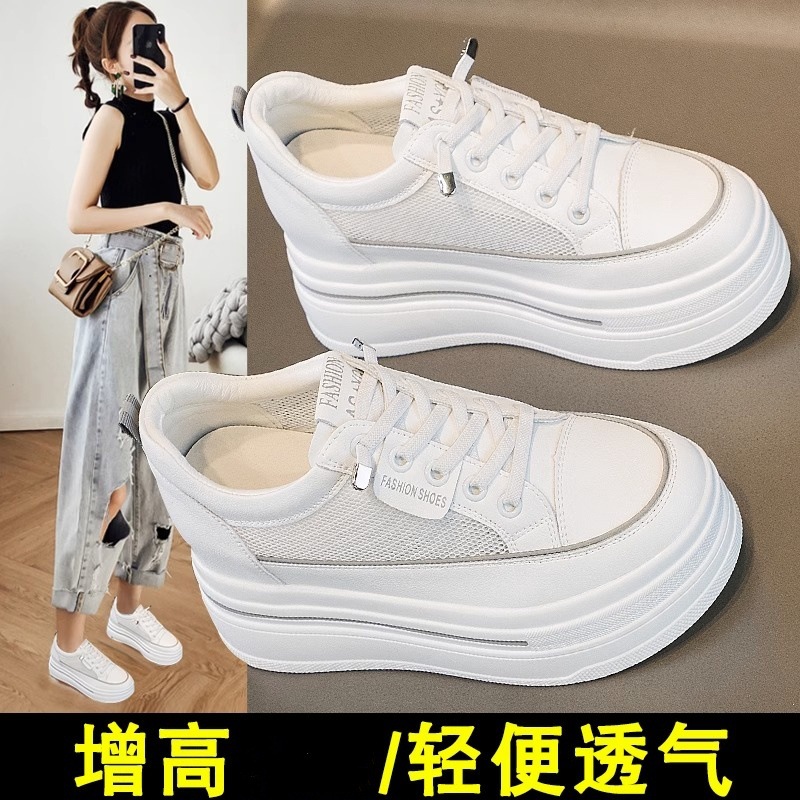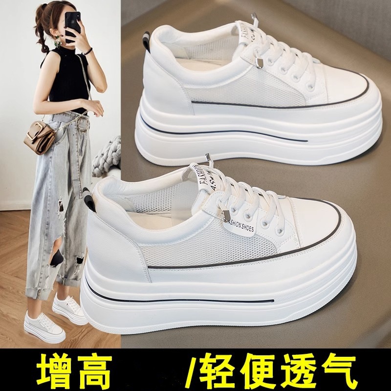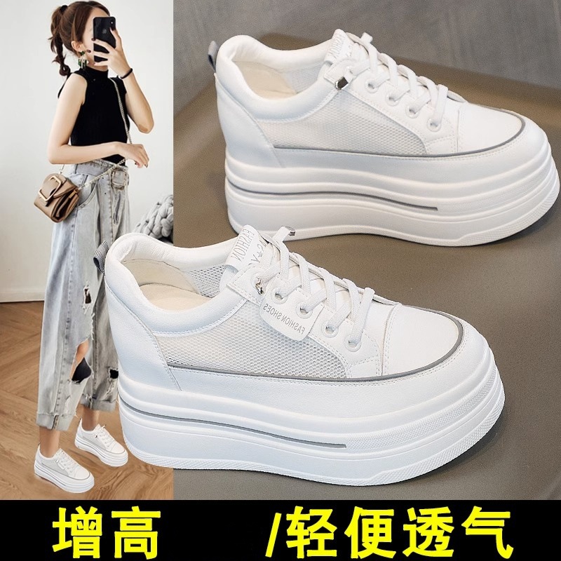 스니커즈 여성의 숨겨진 높이 여성 신발 플랫폼 2024 봄 정품 가죽 새로운 캐주얼 메쉬 작은 크기의 흰색 신발스토어 가기