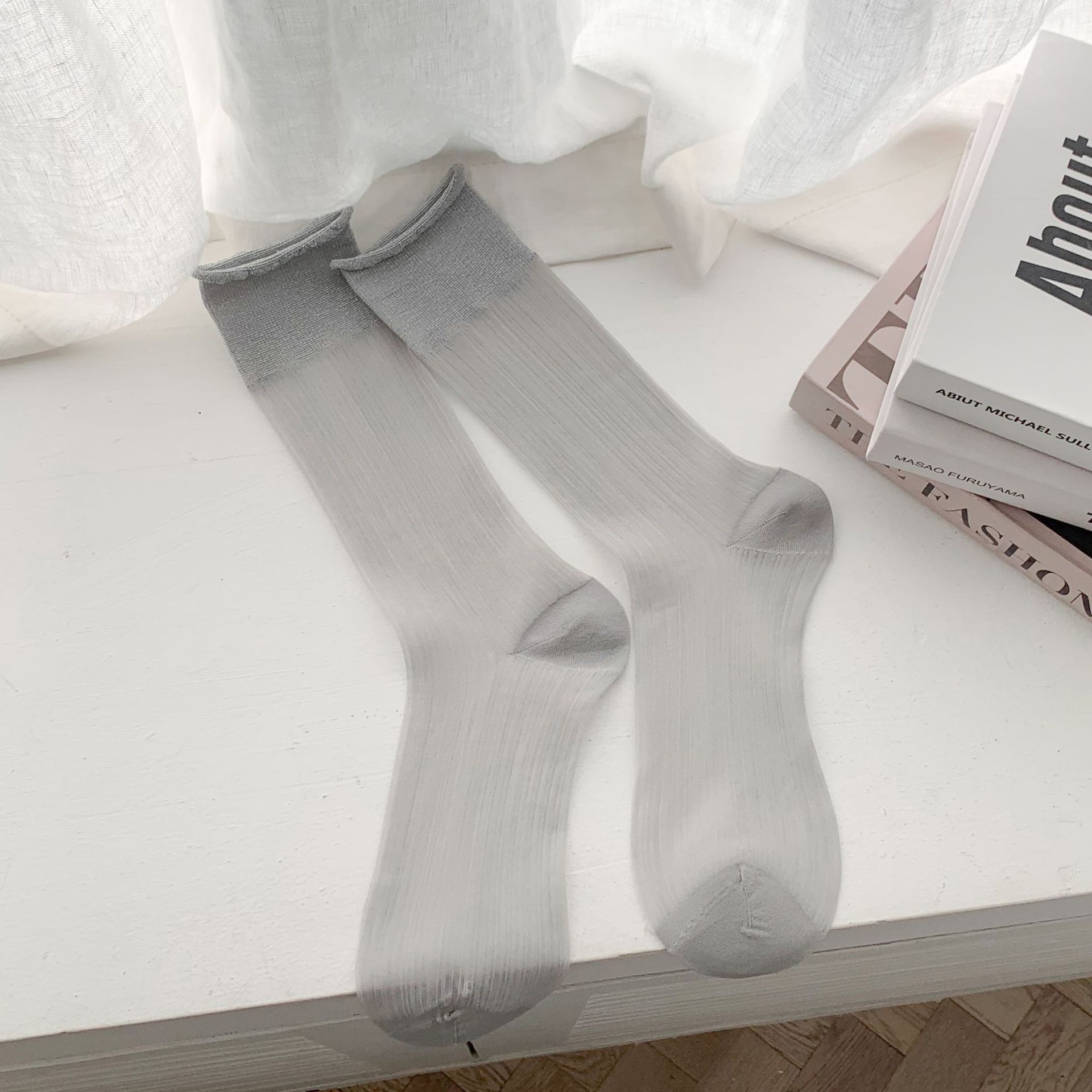 여성을위한 크리스탈 스타킹 봄과 여름 새로운 중간 종아리 길이 양말 통기성 여성 양말 멋진 인터넷 유명 트렌디 한 시원한 느낌 Zhuji 더미 양말