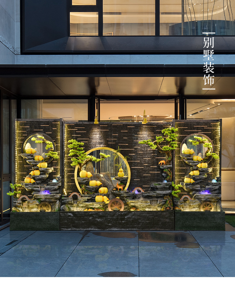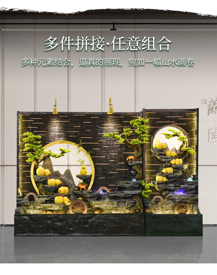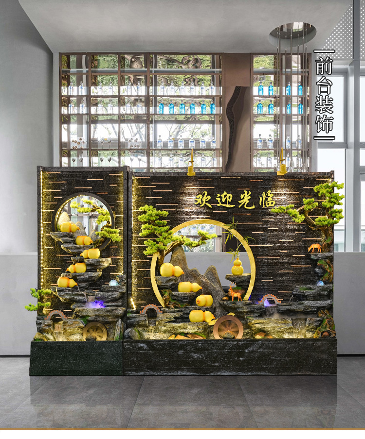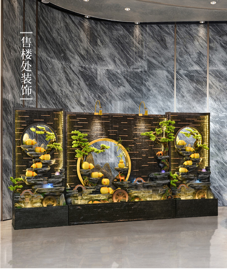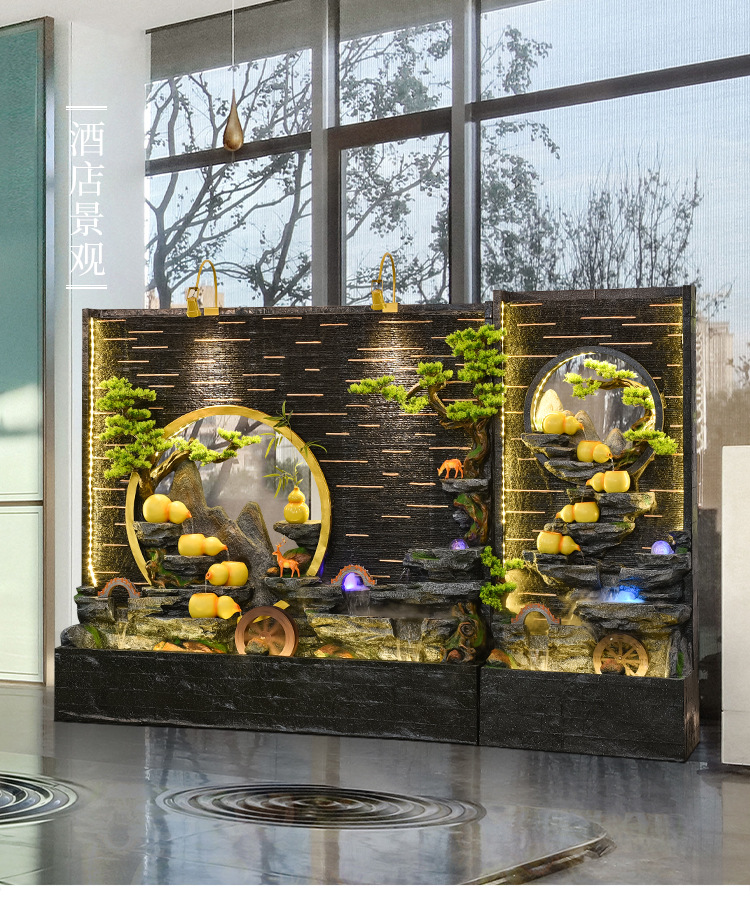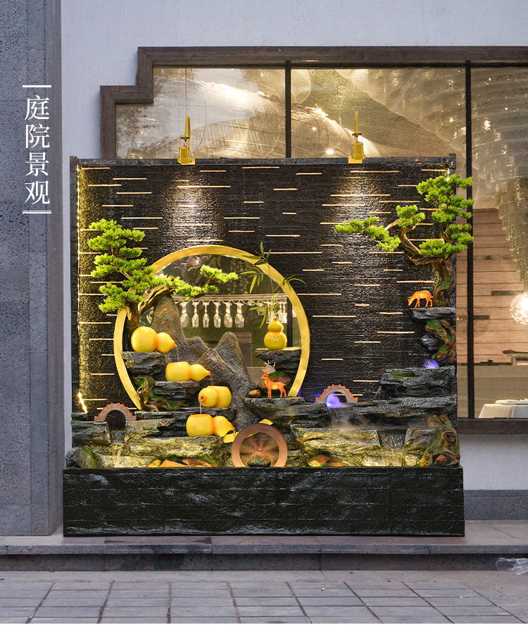 물 커튼 월 스크린 야외 안뜰 물고기 연못 배경 벽 분수 조경 스크린 벽 흐르는 물 벽 Fu Lu Shuangquan