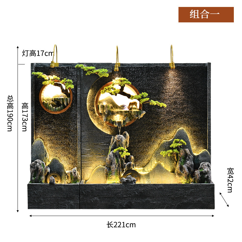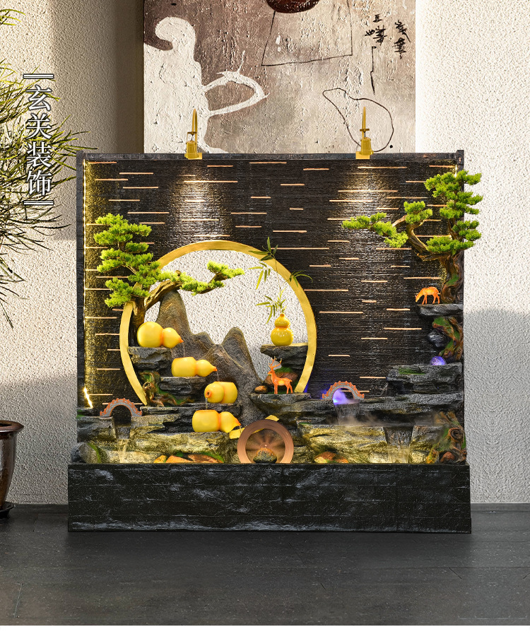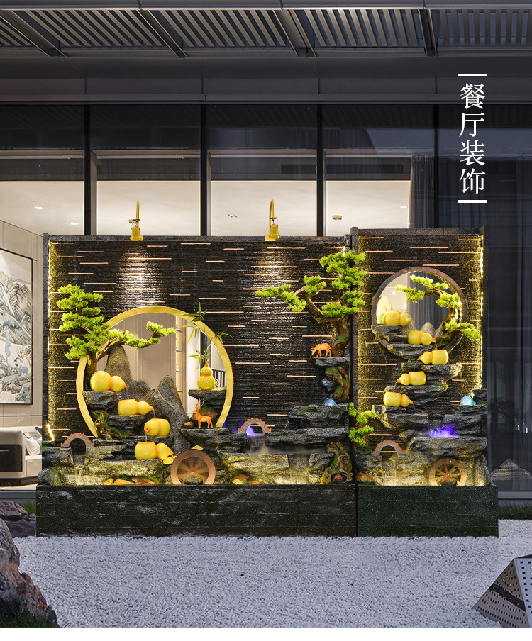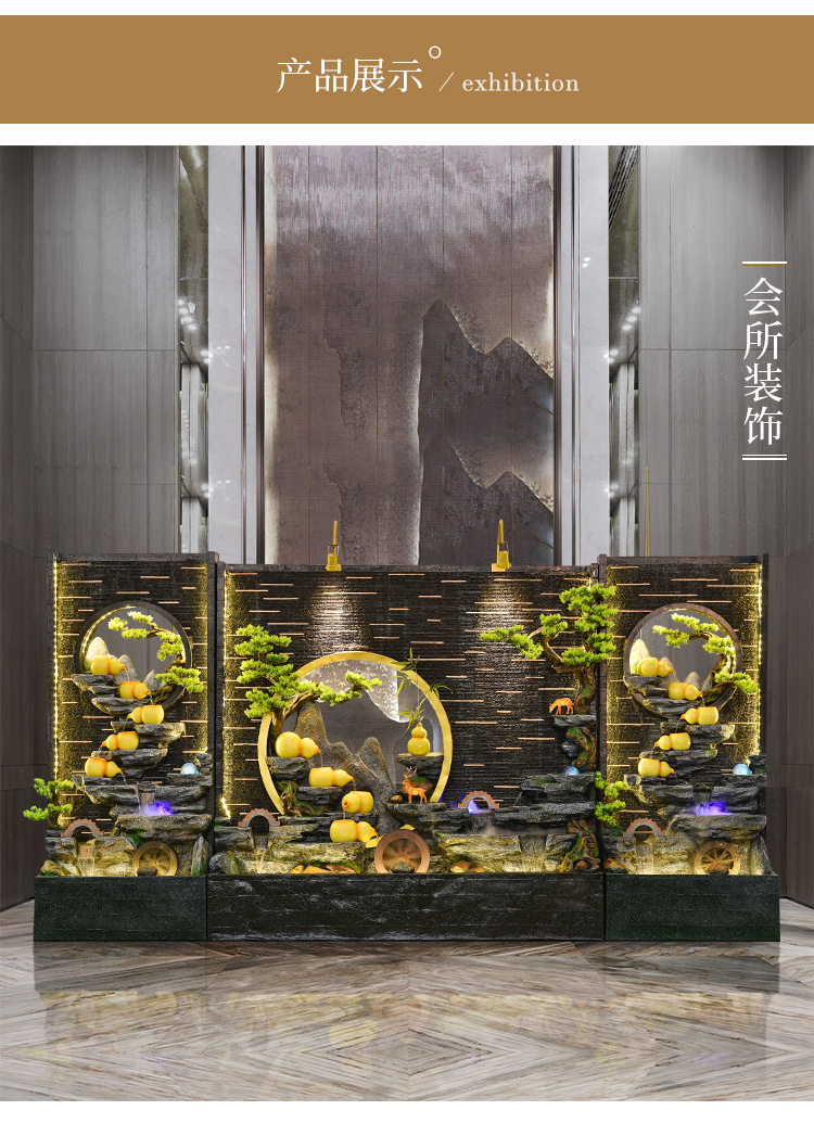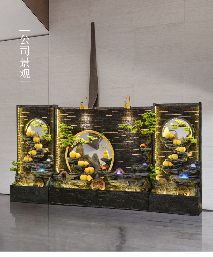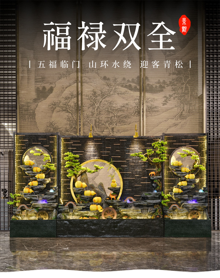 물 커튼 월 스크린 야외 안뜰 물고기 연못 배경 벽 분수 조경 스크린 벽 흐르는 물 벽 Fu Lu Shuangquan