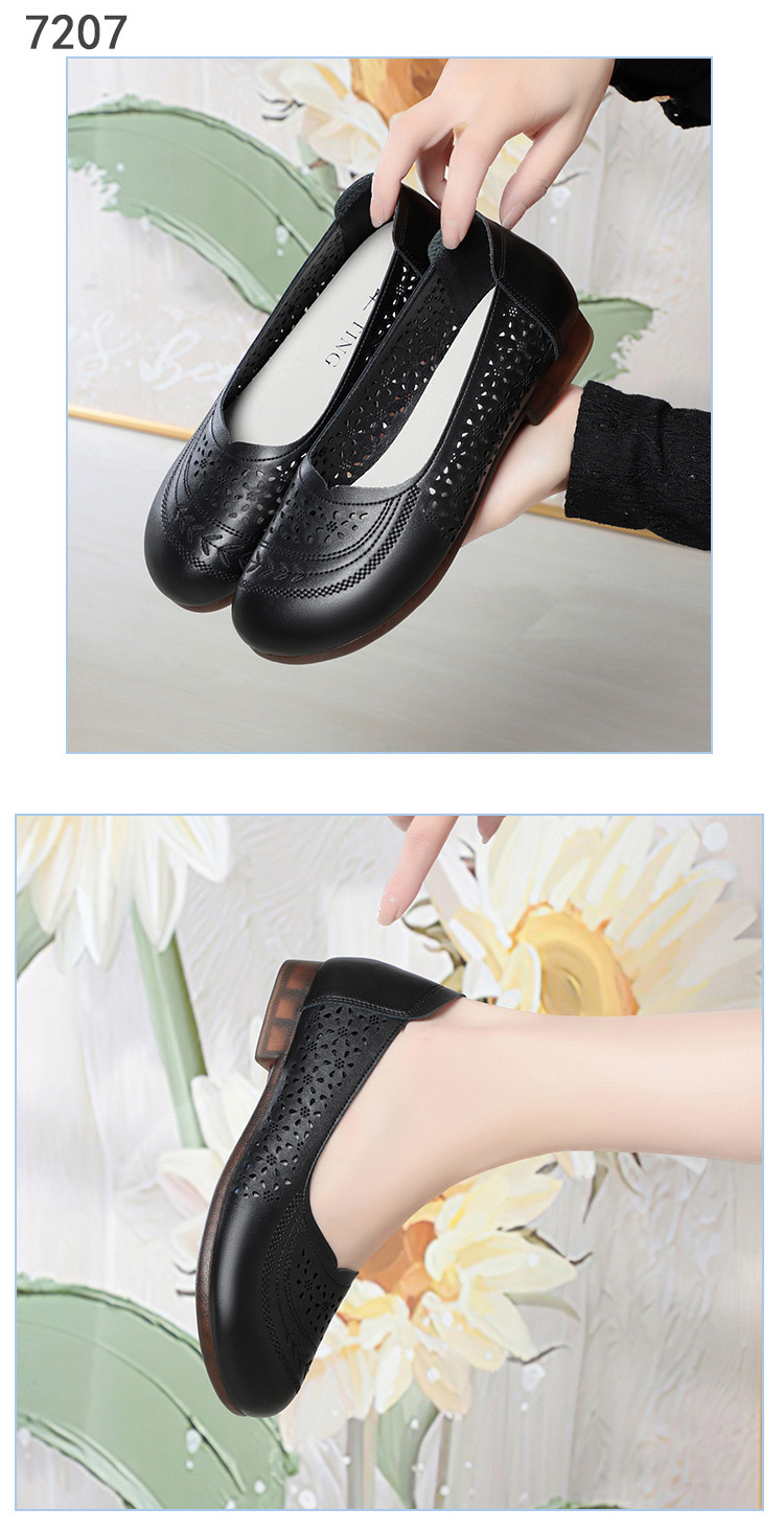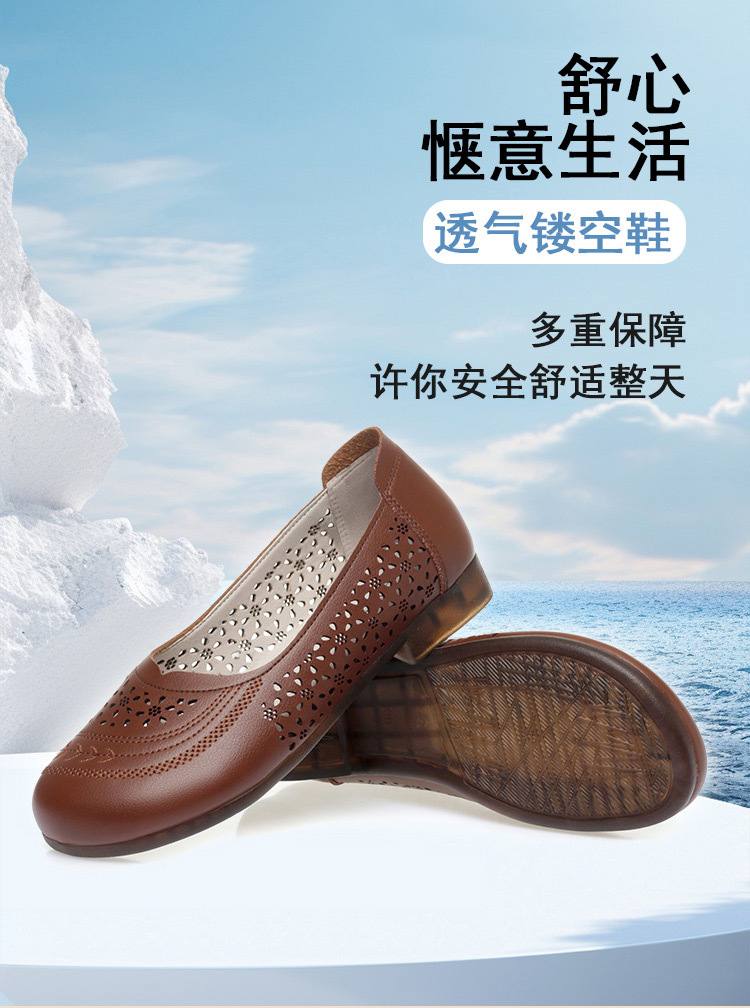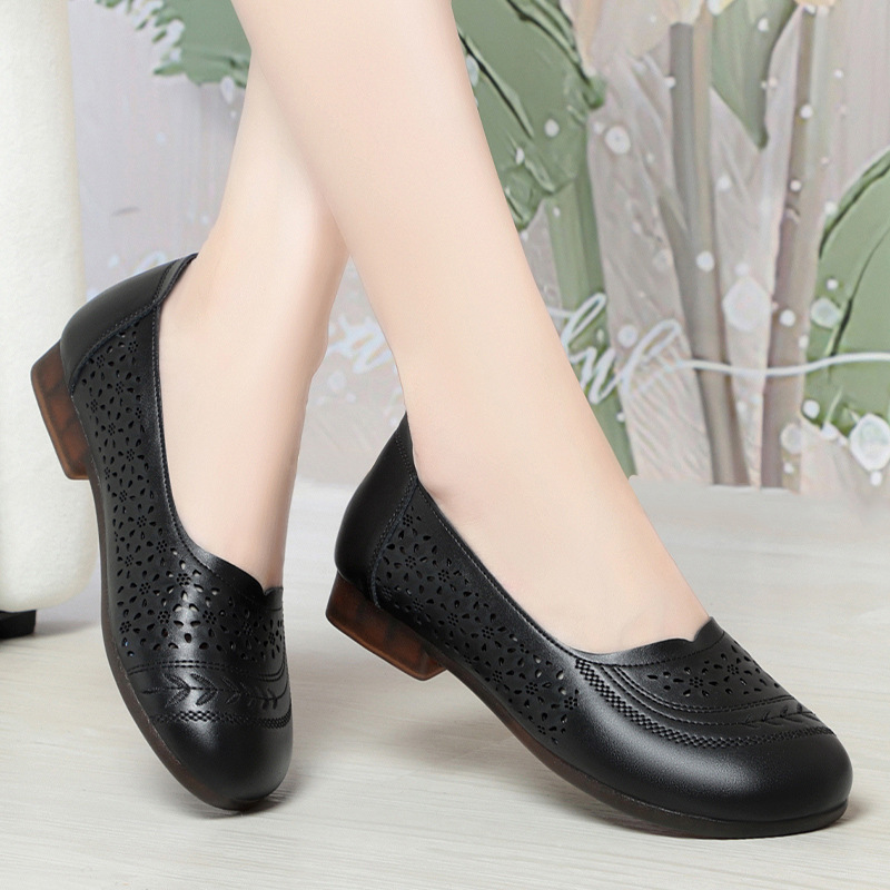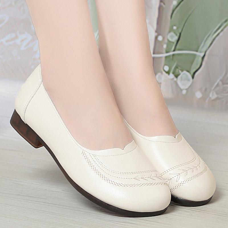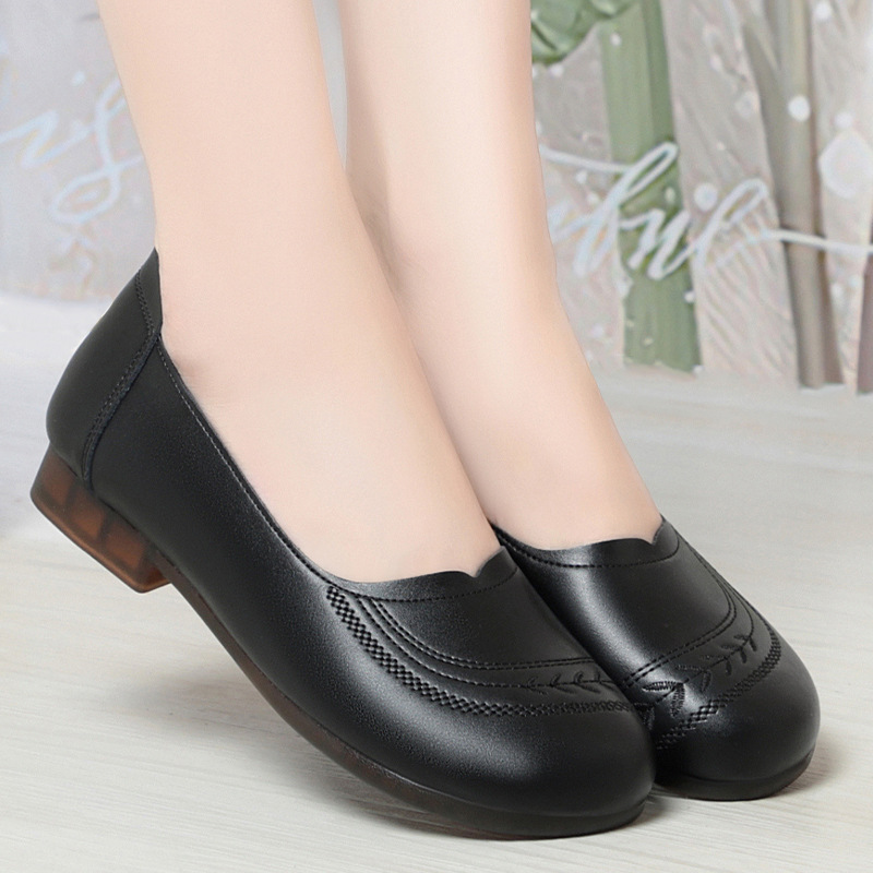 부드러운 바닥 엄마 신발 2024 새로운 봄과 여름 여성 신발 부드러운 가죽 플랫 밀크 신발 중년 및 노인 가죽 신발 편안한 싱글 신발스토어 가기