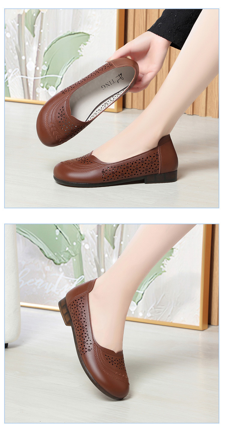 부드러운 바닥 엄마 신발 2024 새로운 봄과 여름 여성 신발 부드러운 가죽 플랫 밀크 신발 중년 및 노인 가죽 신발 편안한 싱글 신발