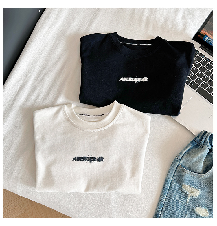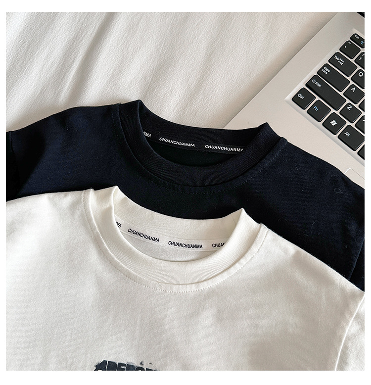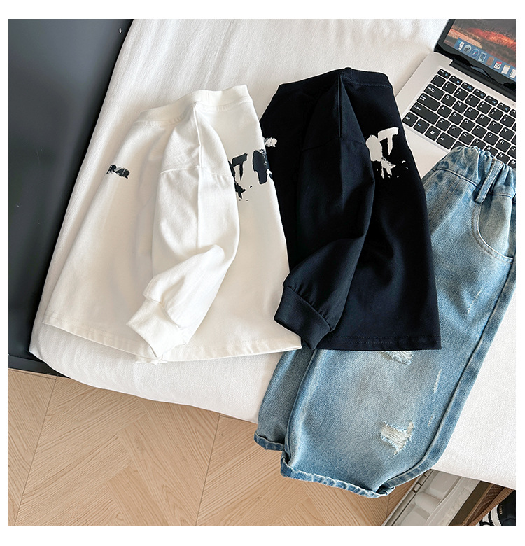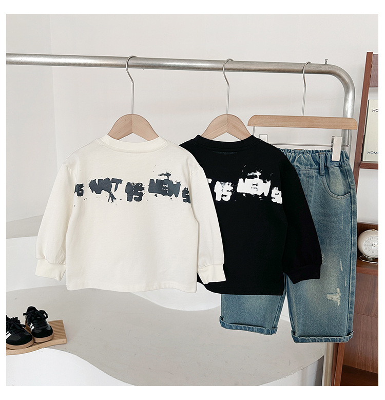 바람 계곡 2024 가을 새로운 아동복 아동 한국어 버전 기본 편지 티셔츠 소년 다목적 맞춤형 바닥 셔츠스토어 가기